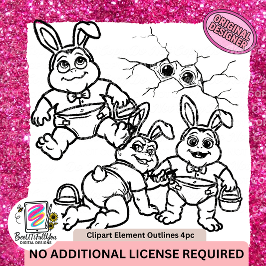baby Dino Bunny Clipart Elements Bundle | 4 Designs | Colored + Outline PNGs | Commercial Use Included