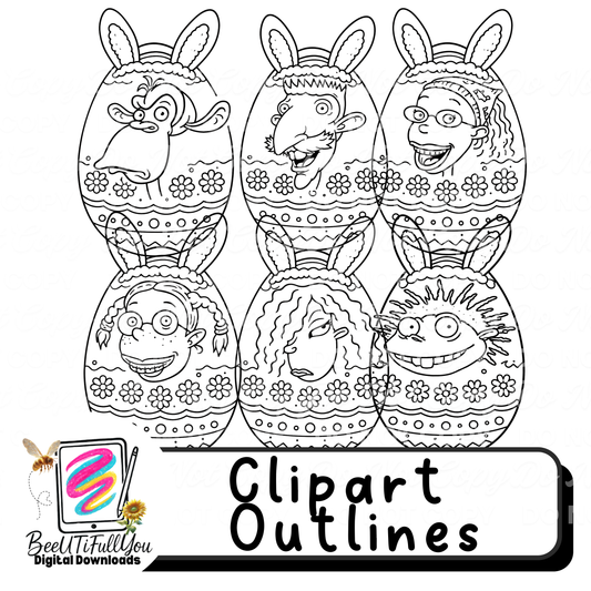 Easter Egg Heads Clipart Set Colored + Outline | Digital Download