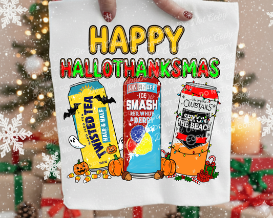 Happy Hallothanksmas PNG | Funny Holiday Drink Design | Twisted Tea, Smirnoff & Clubtails Christmas Thanksgiving Halloween