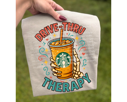 Drive-Thru Therapy Coffee Skeleton Hands PNG - Funny Coffee Digital Download for Shirts & Crafts