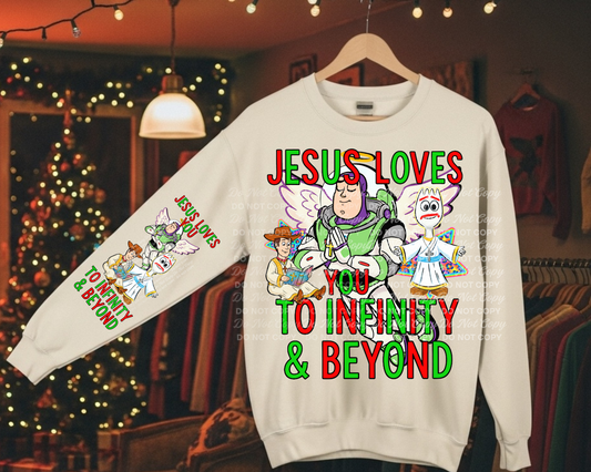 Jesus Loves You To Infinity & Beyond Digital Download PNG | Religious Christmas Sweatshirt Design with Matching Sleeve