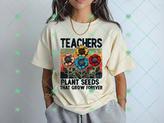 "Teachers Plant Seeds That Grow Forever" Retro Floral PNG Design for DTF and Screen Printing - Commercial Use Approved