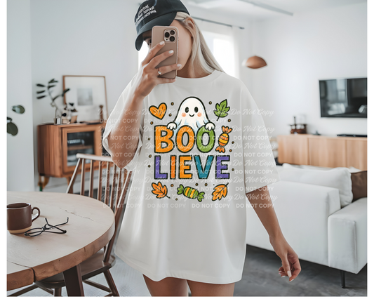 BOO-Lieve PNG | Cute Halloween Ghost with Candy Fall Leaves Digital Download
