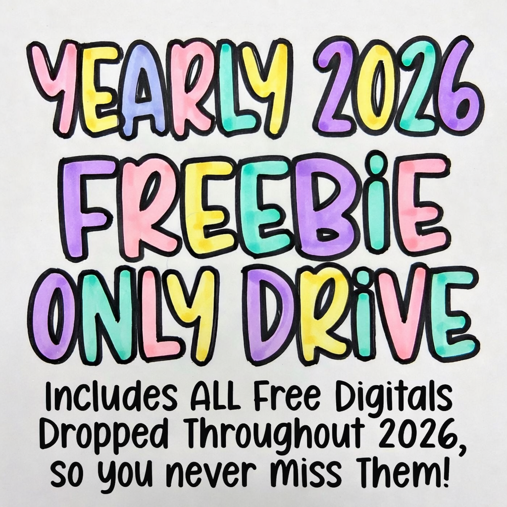 The 2026 Freebie Only Drive is a yearly Google Drive that includes every FREE digital design I release throughout 2026. If you ever miss a free drop, forget to grab it in time, or just want everything neatly organized in one place — this drive is for you.