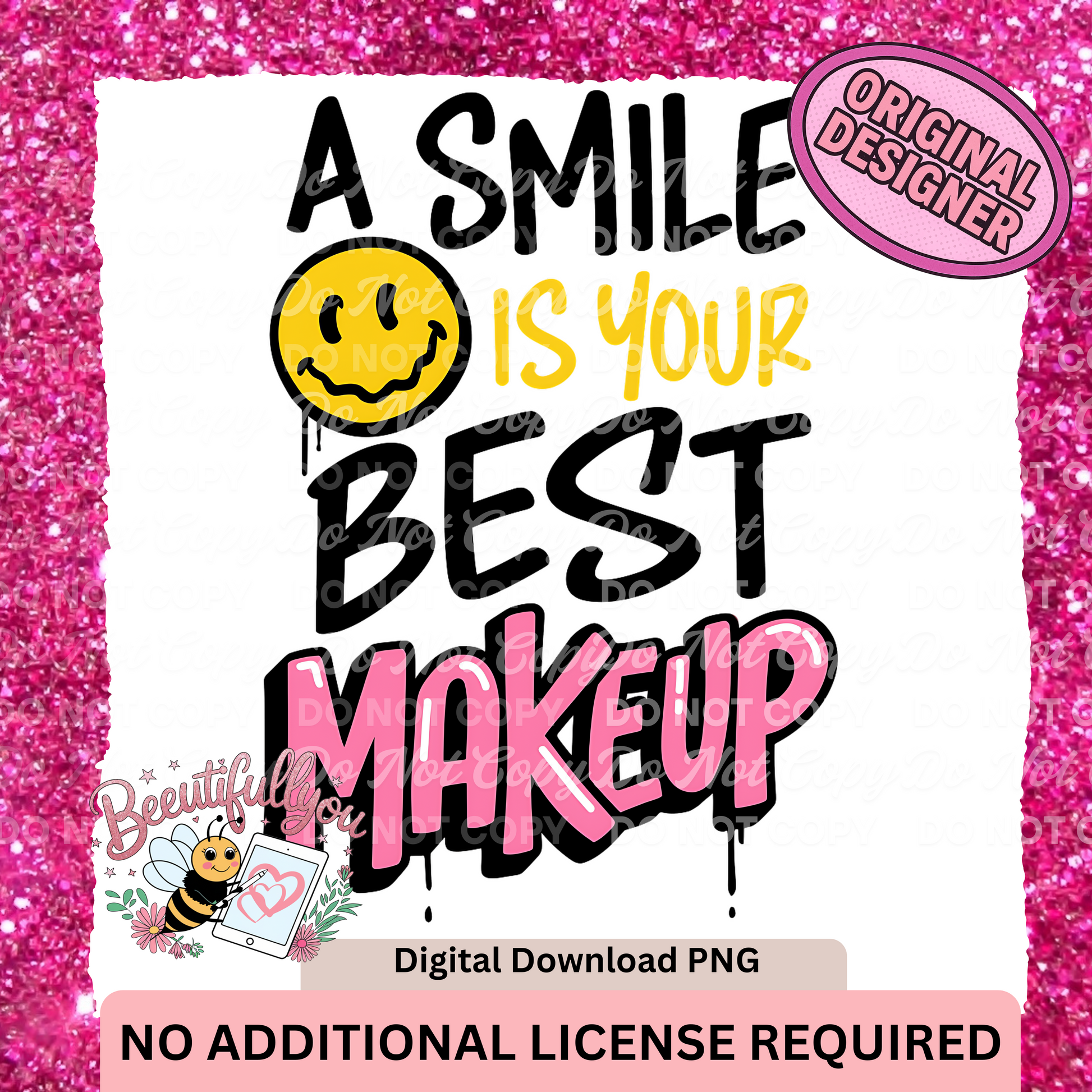 Bring the glam without the glam kit! This playful, drippy-style design features a bright smiley face paired with bold, mixed-style fonts and positive vibes. Perfect for stylists, makeup artists, or anyone who believes confidence is the real glow-up.