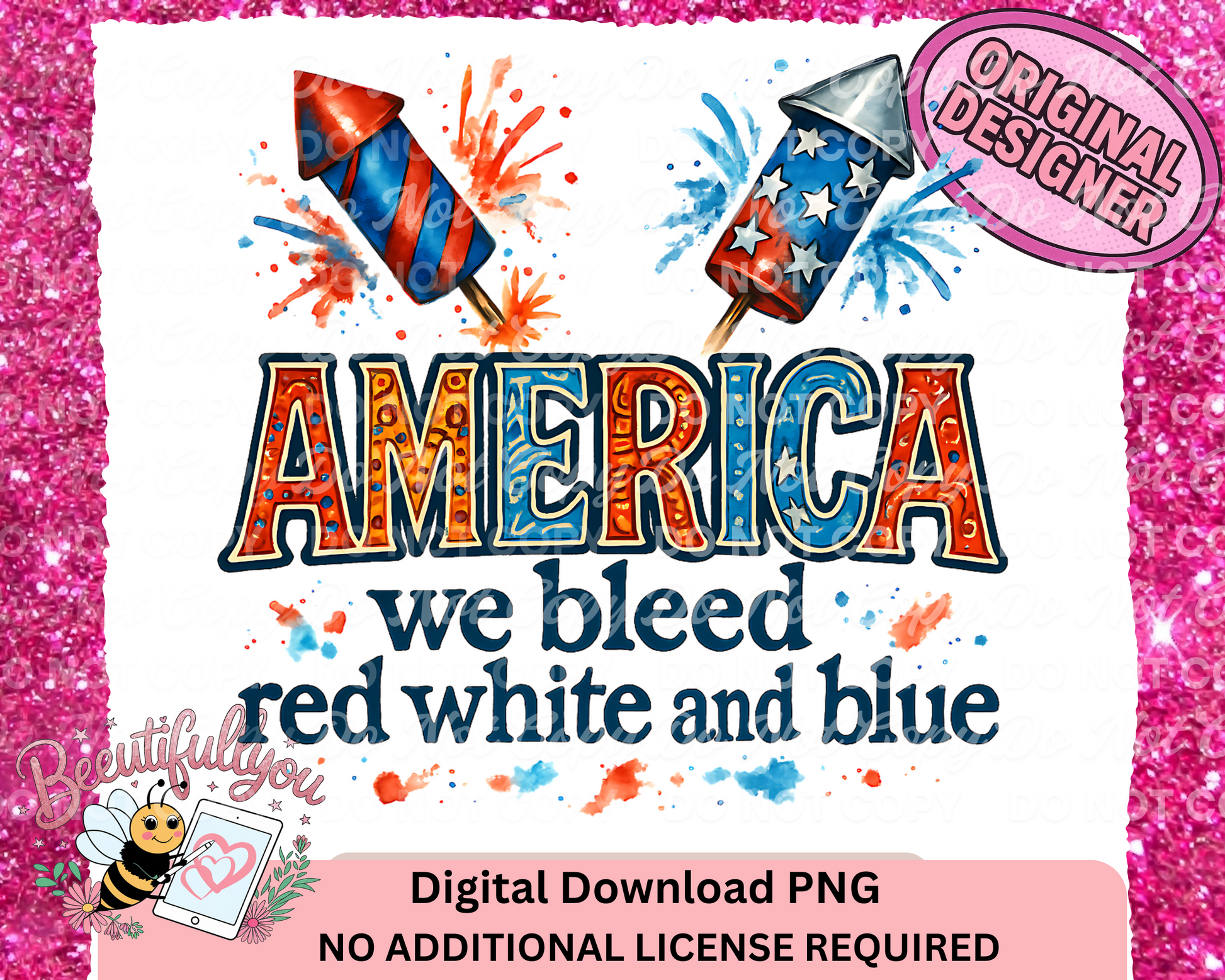 America We Bleed Red White & Blue PNG | Firework Patriotic Sublimation Design