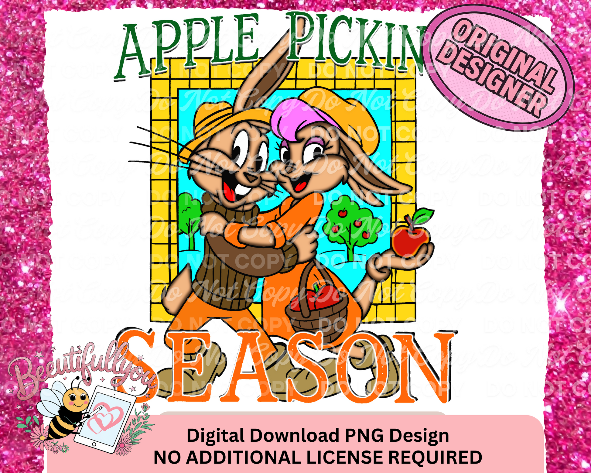 Kick off cozy season with this charming Apple Picking Season PNG! Featuring a lovable bunny couple dressed in their fall best, snuggling up in an apple orchard window scene—this design is perfect for tees, totes, and farmhouse-style decor.