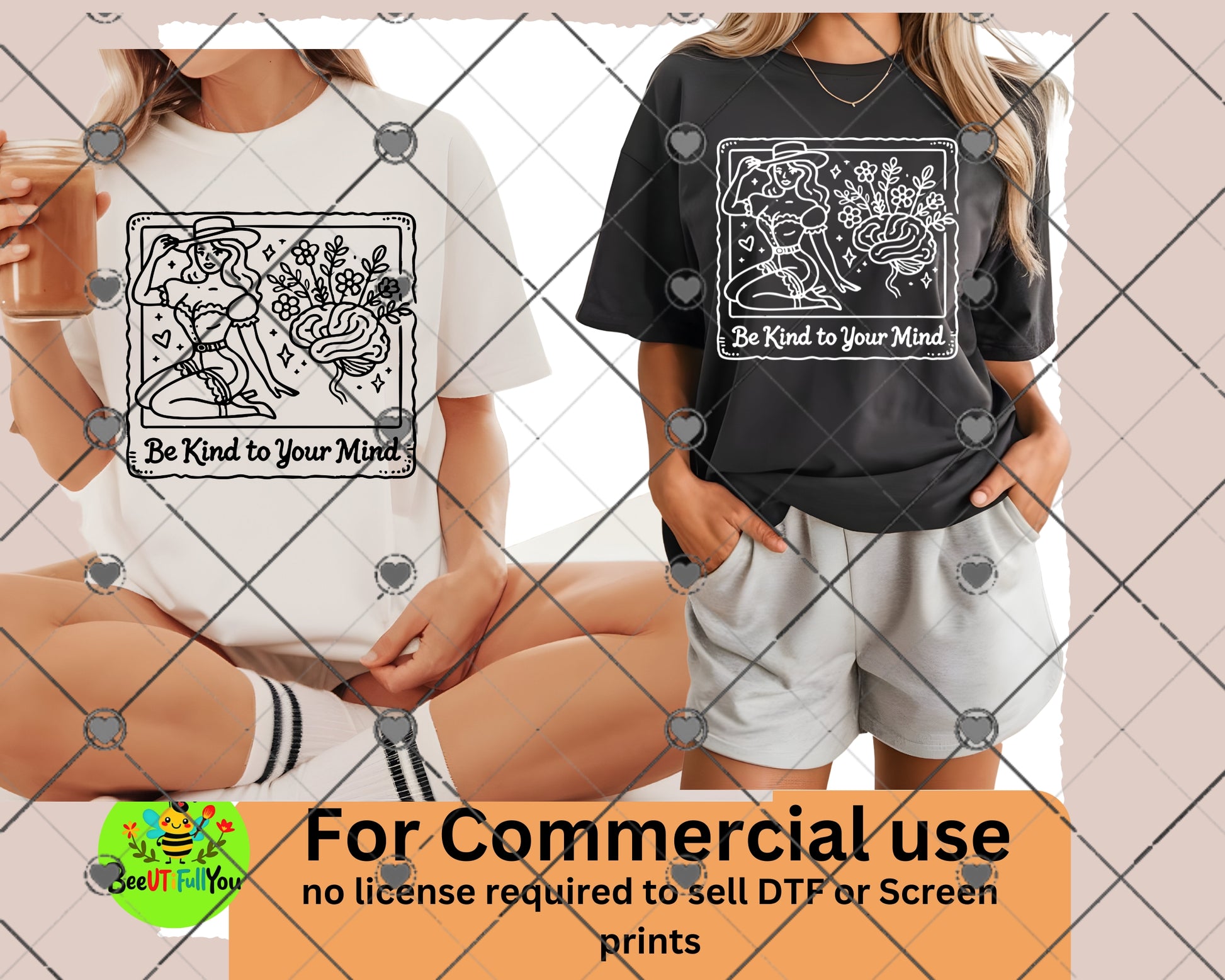 be kind to your mind, mental health graphic, wellness t-shirt design, self-care PNG design, therapy awareness print, positive mental health art, mindfulness statement design, trendy mental health graphic, stylish wellness print, empowering self-care art, DTF positive print, mindfulness aesthetic design, wellness advocate design