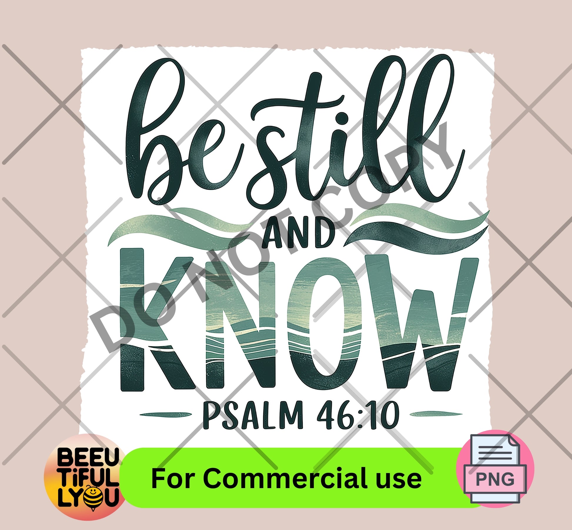 Be Still and Know - Psalm 46:10 Sublimation Design PNG - Faith-Based Scripture Shirt Design