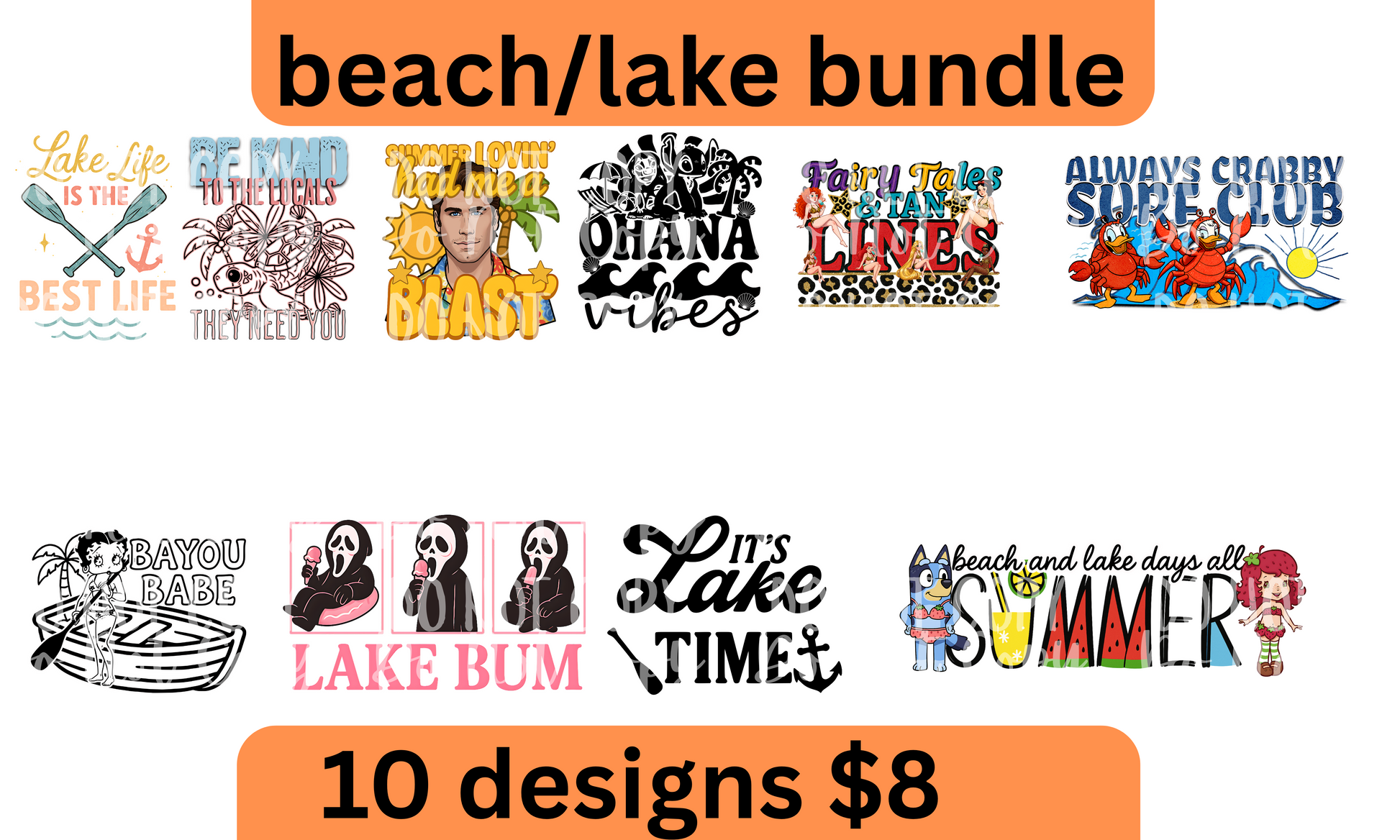 Soak up the sun with this playful and unique Beach/Lake Bundle featuring 10 handpicked summer designs! From tropical vacay vibes to hilarious characters like Ghostface eating ice cream and beachy cartoon cuties, this set is perfect for tees, totes, and all your sunny-day creations.