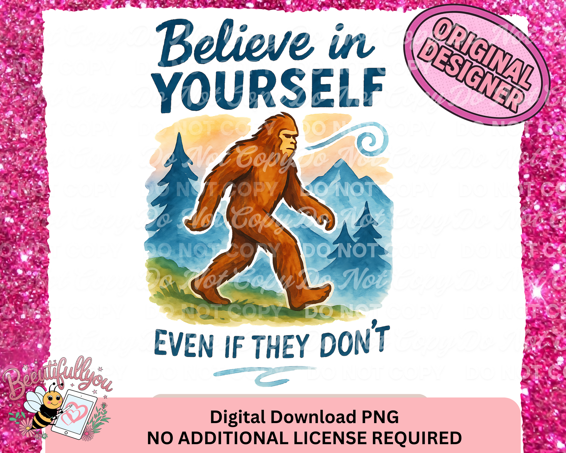 Believe in Yourself – Even If They Don’t | Inspirational Bigfoot PNG Design | No Additional License Required