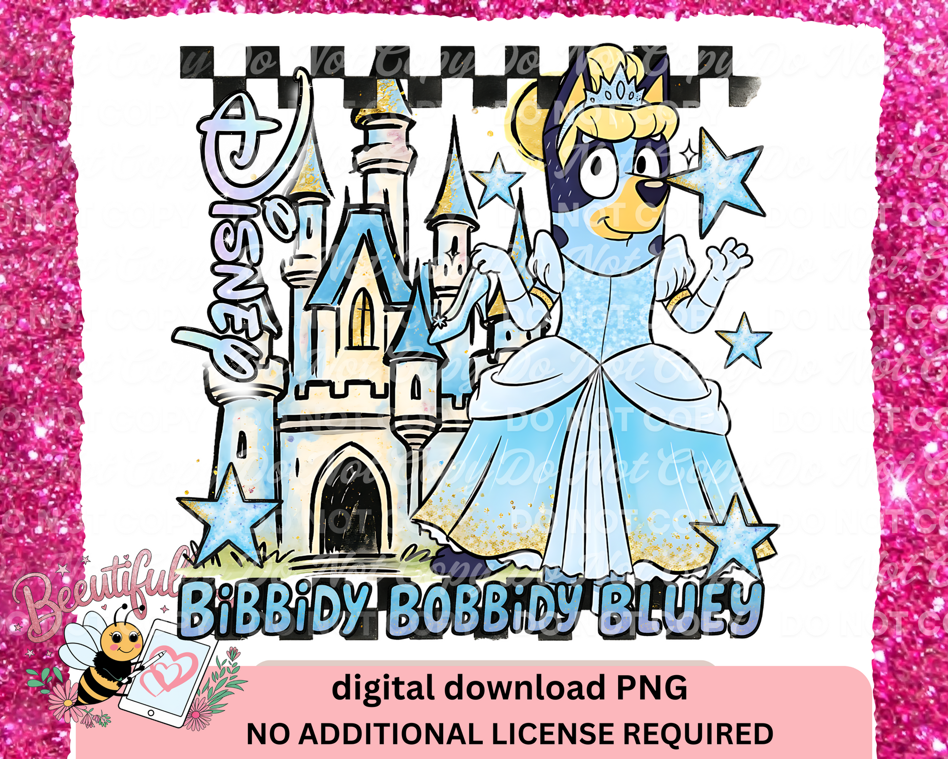 Bibbidi Bobbidi Bluey PNG | Disney Princess Castle Digital Download | Bluey Sublimation Design for Shirts