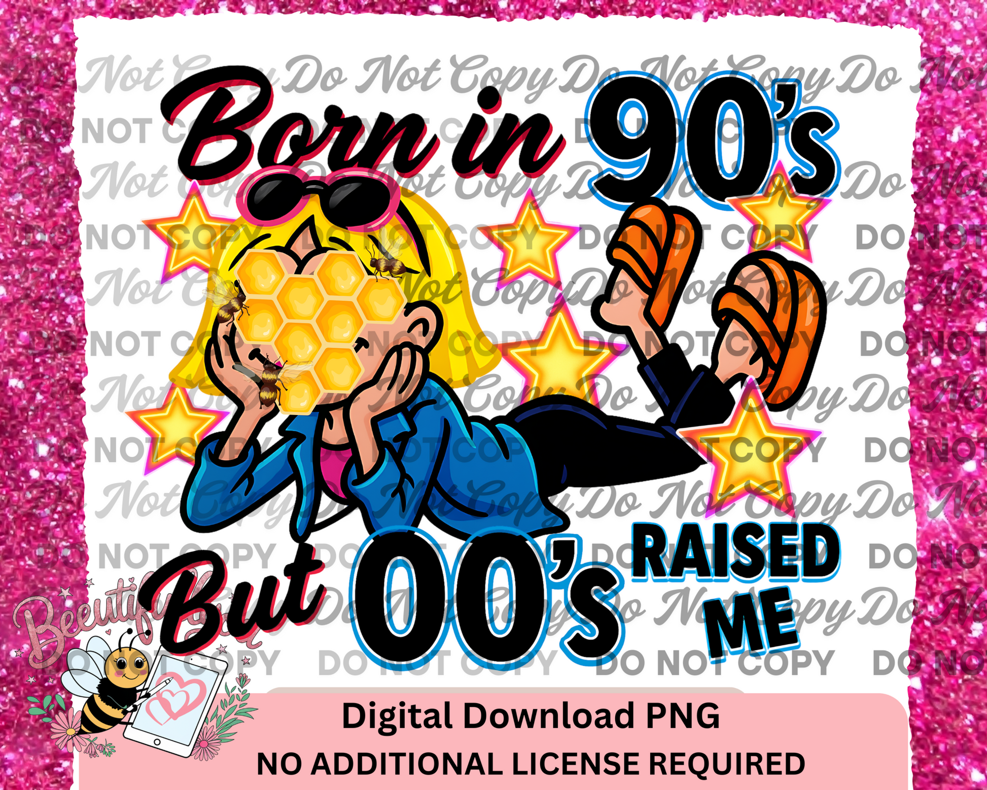 Born in the 90s But 00s Raised Me PNG – Retro Cartoon Digital Download for Millennial Shirt Designs
