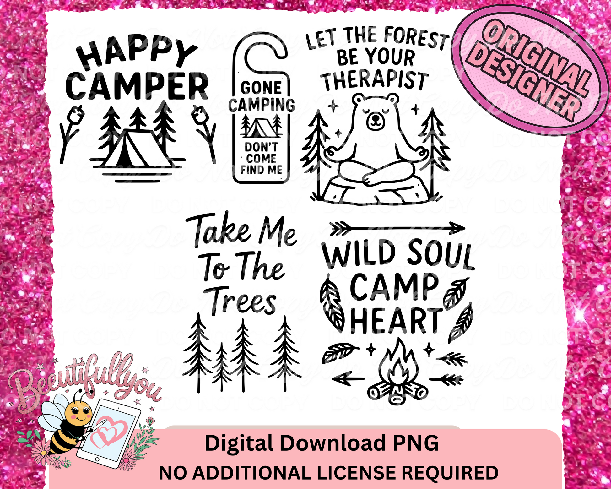 Camping Forest Doodle PNG Bundle | Nature Therapy, Tent Life, Outdoor Quotes, PNG, SVG, CANVA template