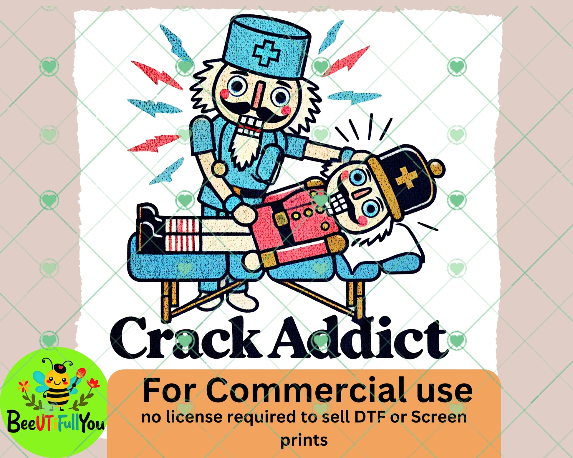 Add a humorous twist to your holiday projects with this “Crack Addict” Chiropractor Nutcracker Design! Featuring two vintage-style nutcrackers—one as a chiropractor and the other hilariously being adjusted—this witty and festive design is perfect for creating apparel, mugs, tote bags, and more. With its playful humor and retro charm, it’s a standout choice for chiropractors, holiday lovers, or anyone who appreciates a good laugh.
