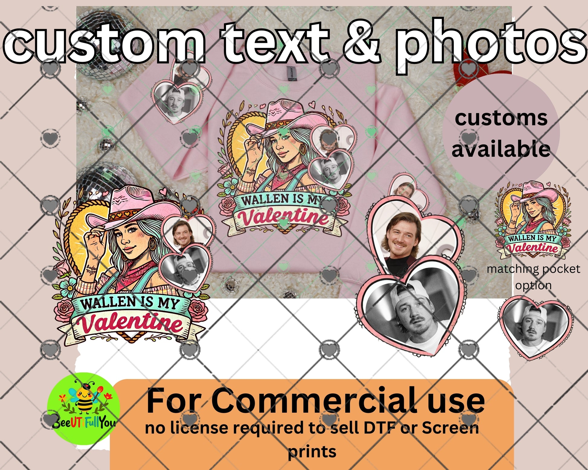 custom valentine design, personalized valentine PNG, custom name photo design, valentine's day graphic, trendy valentine shirt, romantic gift design, cowboy valentine art, love theme customizable, valentine photo PNG, valentine DTF printing, unique valentine gift, custom text design, custom photo valentine