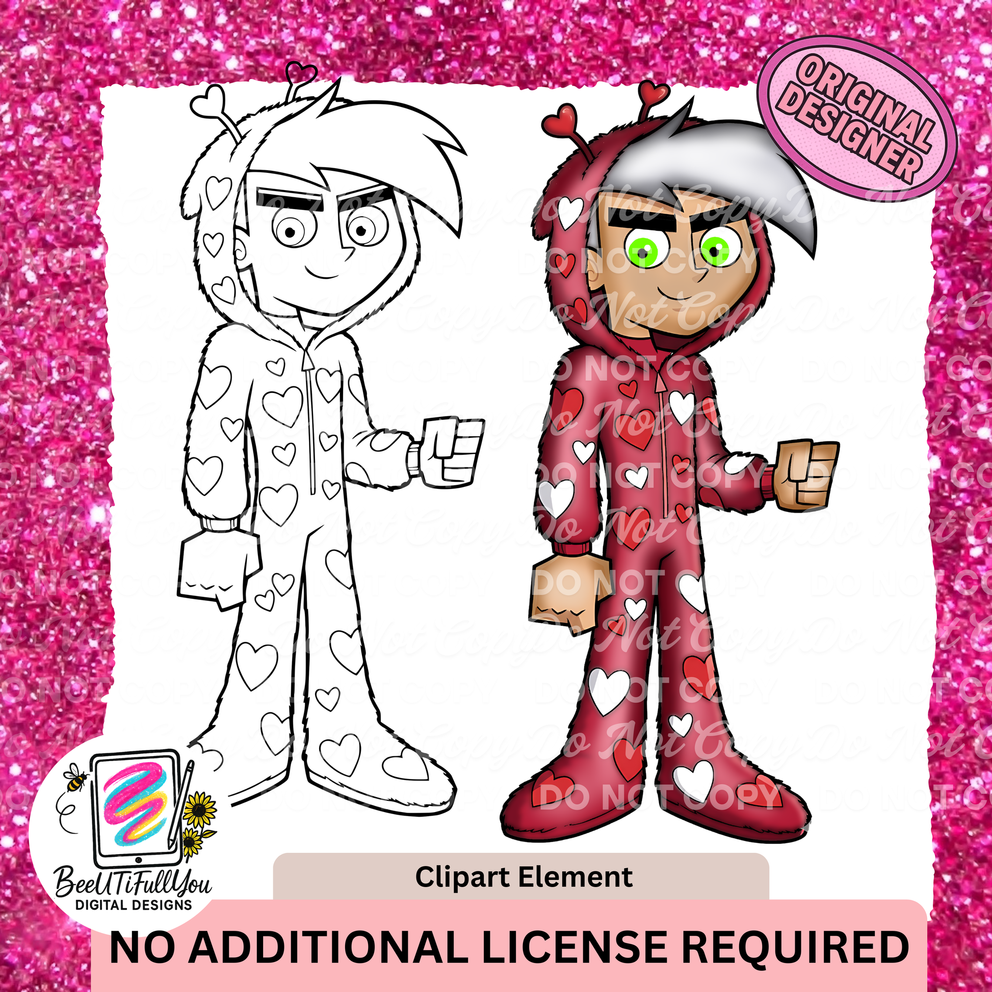 Bring some nostalgic Valentine magic to your designs with this Danny Phantom–style Valentine Clipart Element! This listing includes both the full-color clipart AND the matching black-and-white outline, giving you complete creative freedom to make your own finished designs.