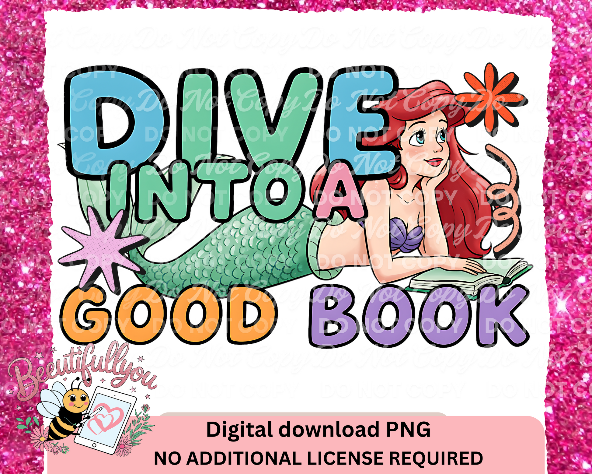 Dive Into a Good Book PNG | Mermaid Reading Summer Book Lover Digital Download