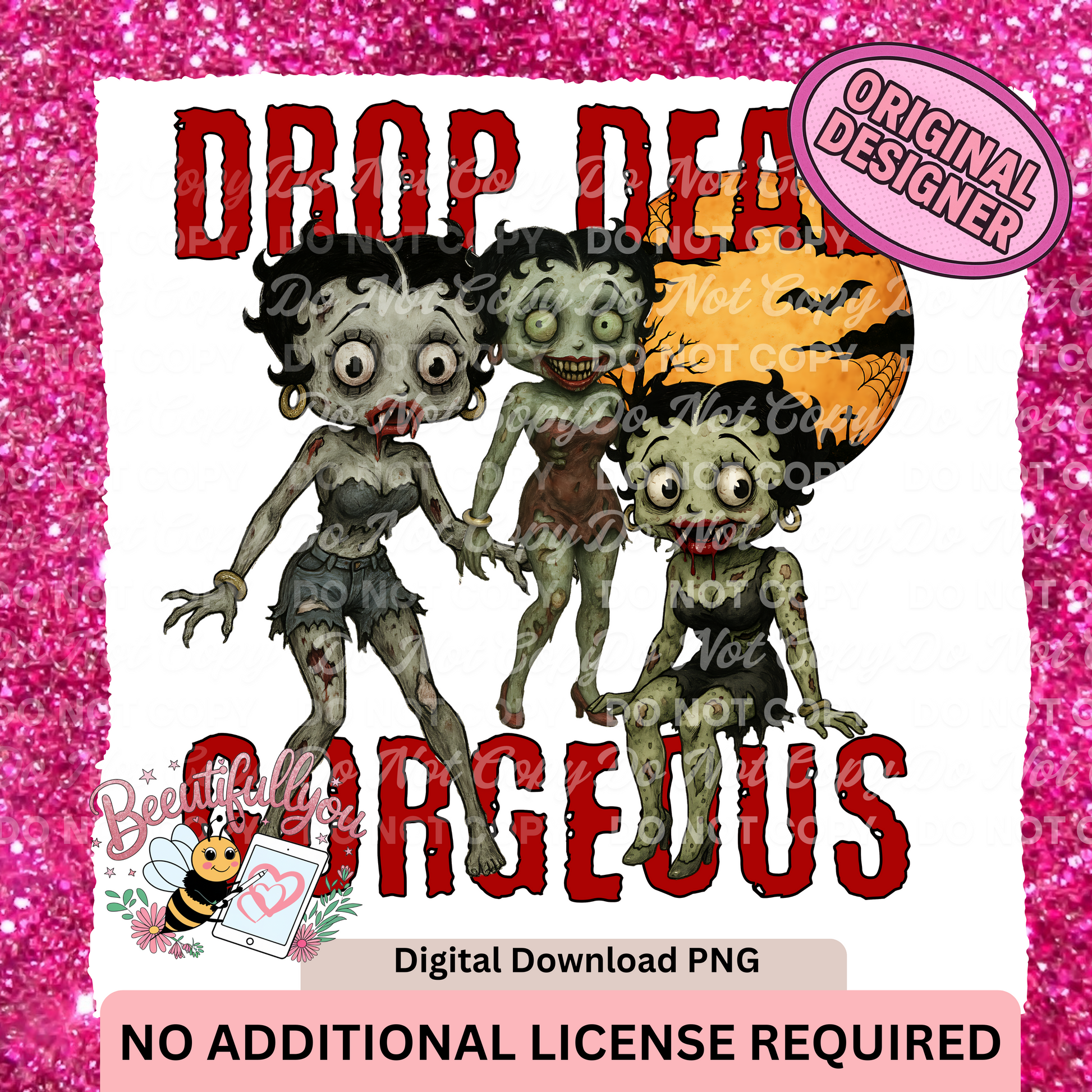 Who says you can’t be dead and fabulous? 💄 This “Drop Dead Gorgeous” PNG features glam zombie ghouls serving attitude, rips, and retro horror charm. Perfect for spooky babes, Halloween events, and anyone who rocks creepy cute vibes.
