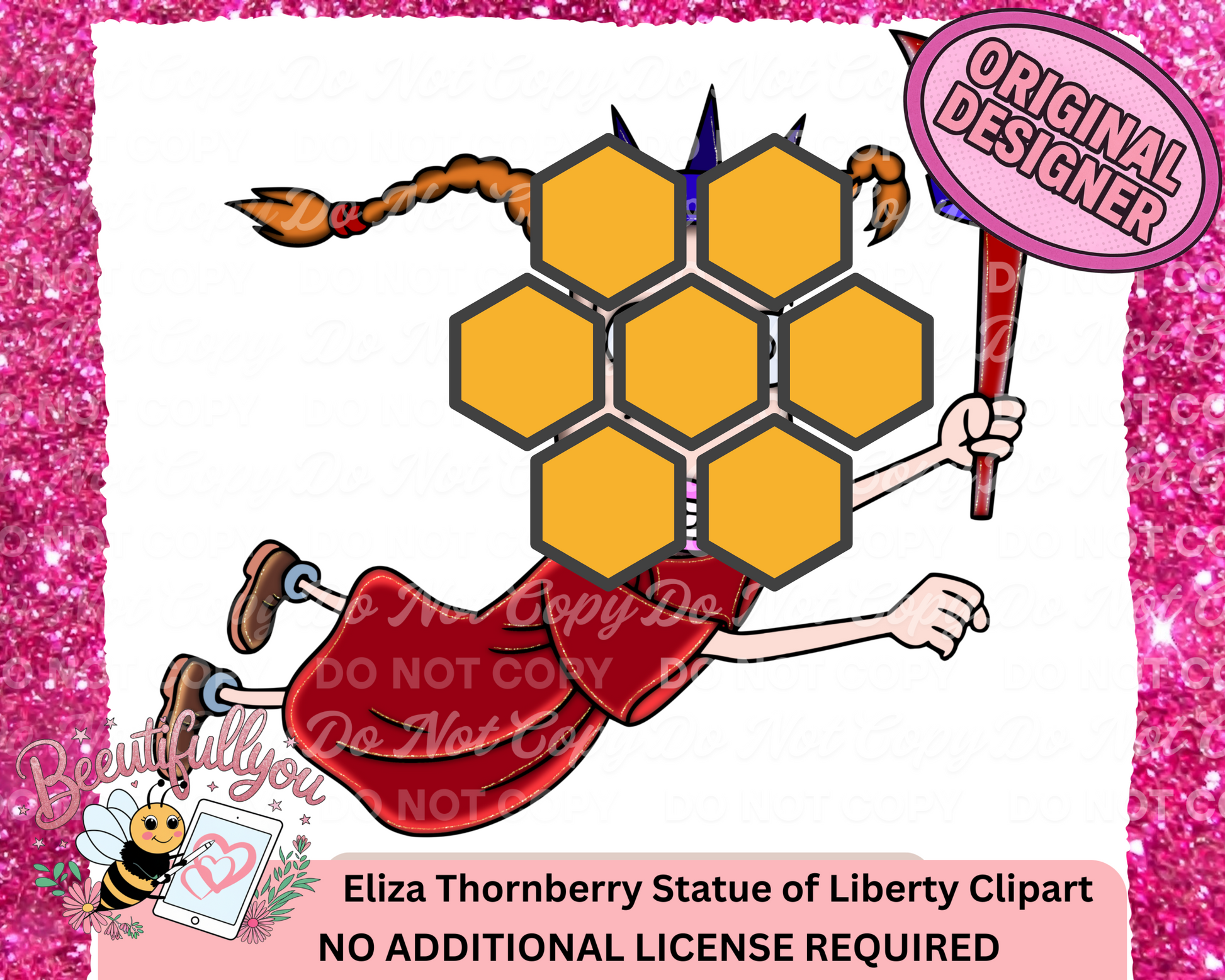 This high-quality clipart PNG features a hilarious twist on a childhood favorite—Eliza Thornberry dressed as the Statue of Liberty! Perfect for patriotic designs, funny shirt mockups, and summer graphics.