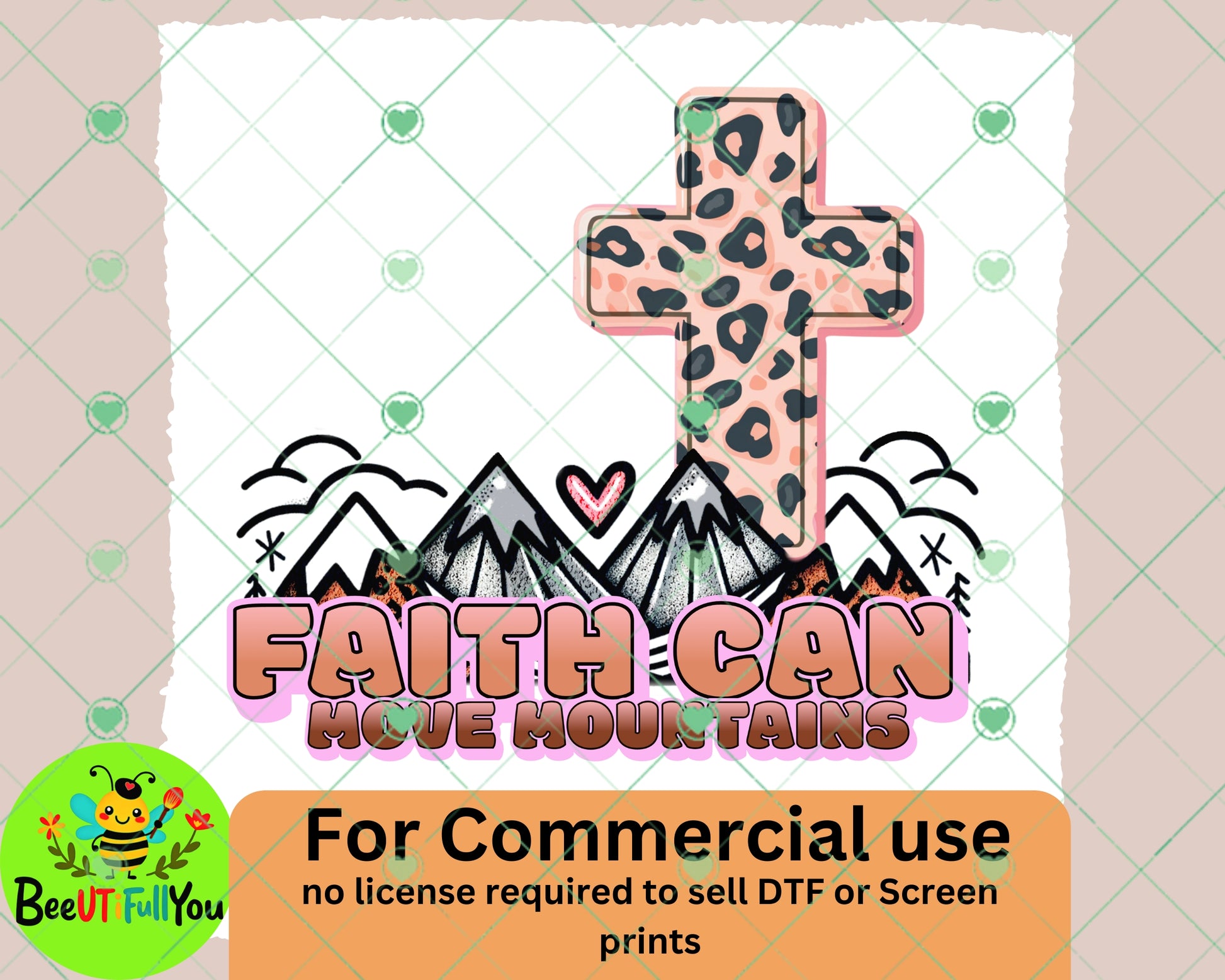 🌄 "Faith Can Move Mountains" Sublimation Design – This uplifting design features a stunning leopard-patterned cross set against a serene mountain backdrop. The bold text "Faith Can Move Mountains" adds an empowering and faith-filled touch to your projects.