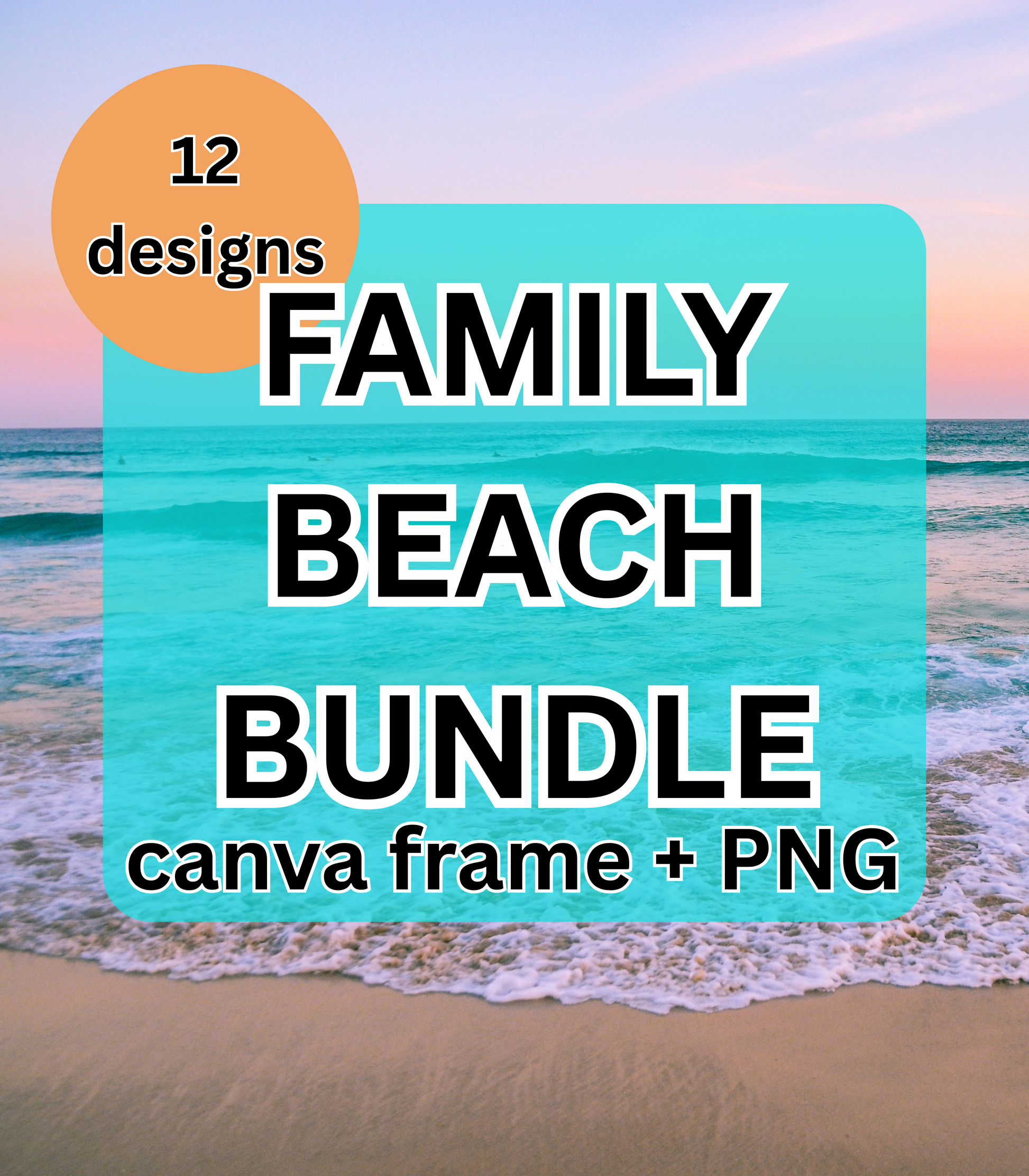 Family Beach Bundle – 12 Summer Designs (Canva Frame + PNG)