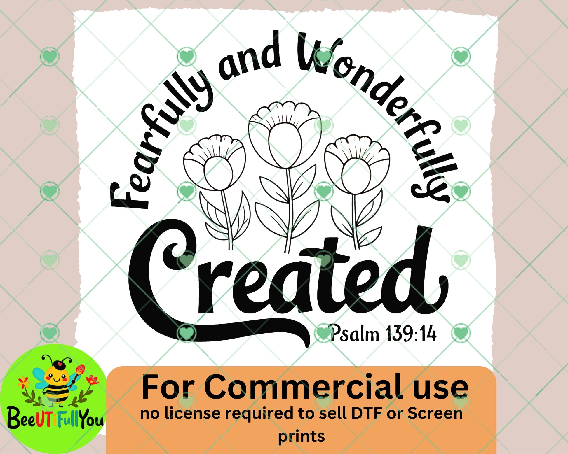 Fearfully and Wonderfully Created" Psalm 139:14 PNG Design