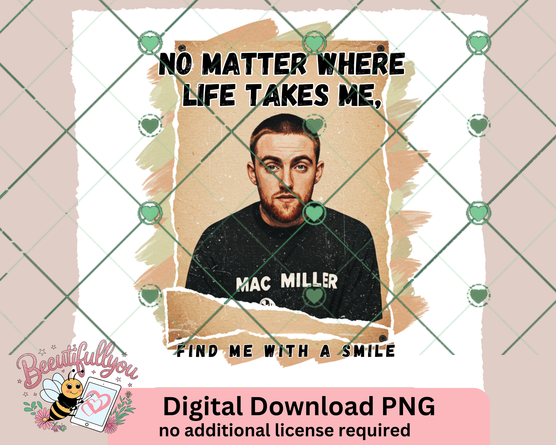 Celebrate the legacy of Mac Miller with this heartfelt tribute design. Featuring a vintage aesthetic and timeless lyrics, this design is perfect for shirts, mugs, posters, and more. Whether you're a lifelong fan or honoring his memory, this design captures his positive energy and impact on music.