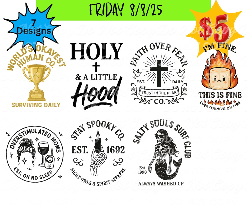 FRIDAY DROP Bundle 1 8/8/25 — 7 DESIGNS FOR $5! 🎉