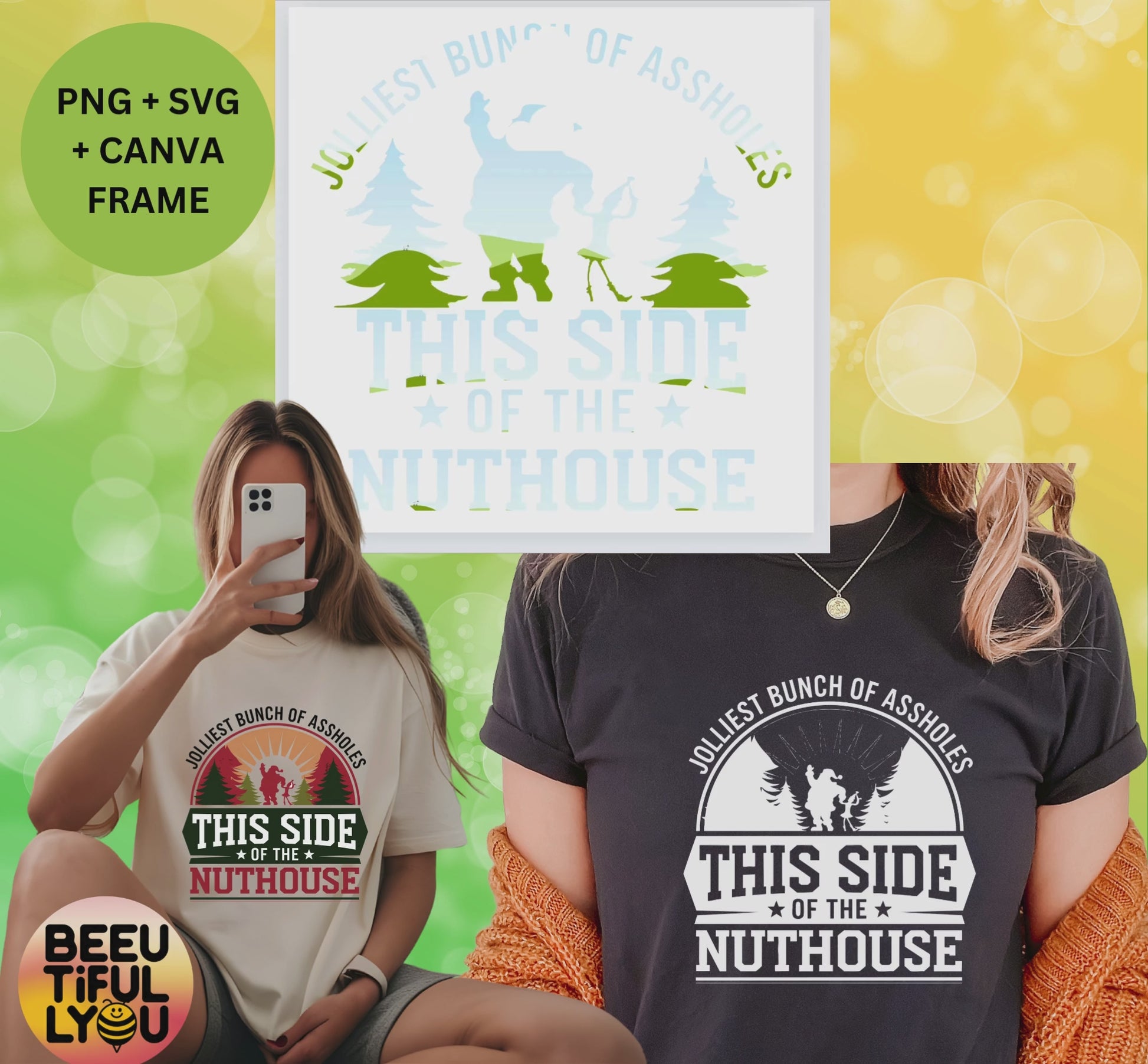 Get ready to bring laughter and holiday cheer with our "Jolliest Bunch of Assholes This Side of the Nuthouse" digital download! Perfect for crafting hilarious Christmas shirts, mugs, party decor, and more, this SVG and PNG bundle is your go-to for sassy holiday designs.
