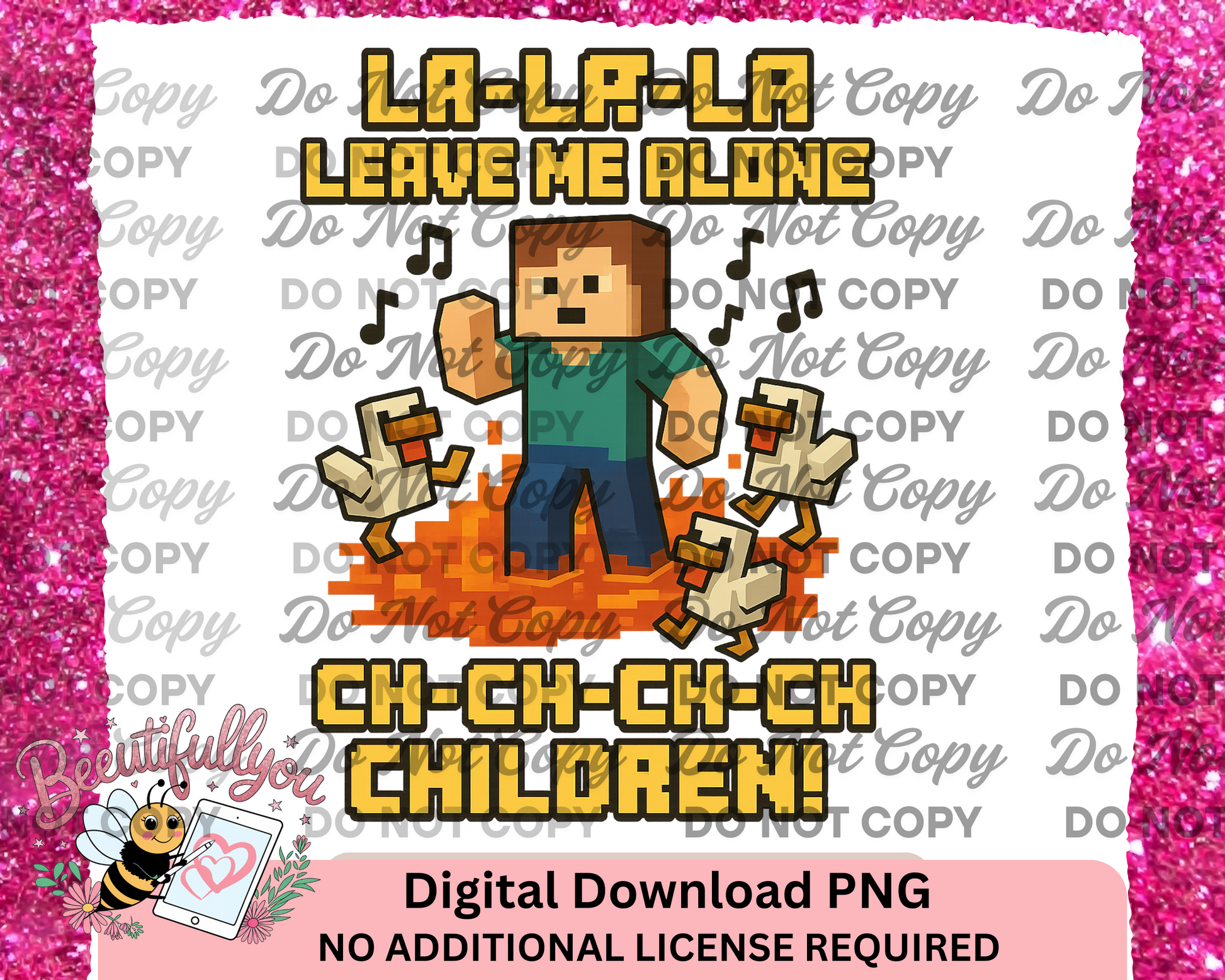 Funny Minecraft-Inspired PNG – "La-La-La Leave Me Alone – Ch-Ch-Ch-Children!" Digital Download