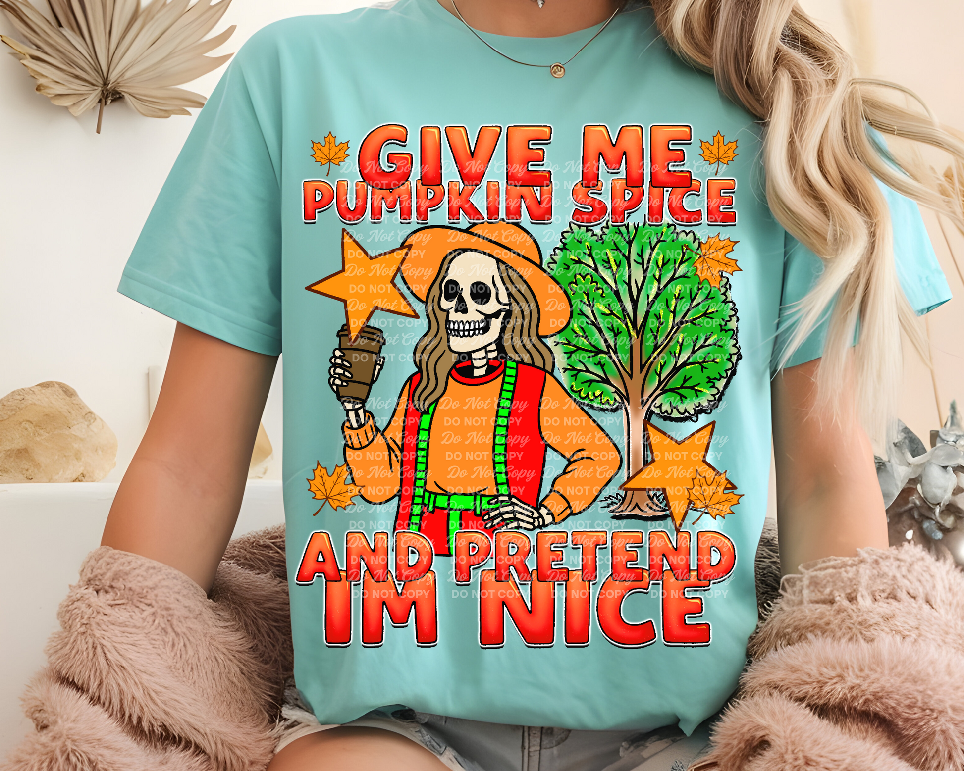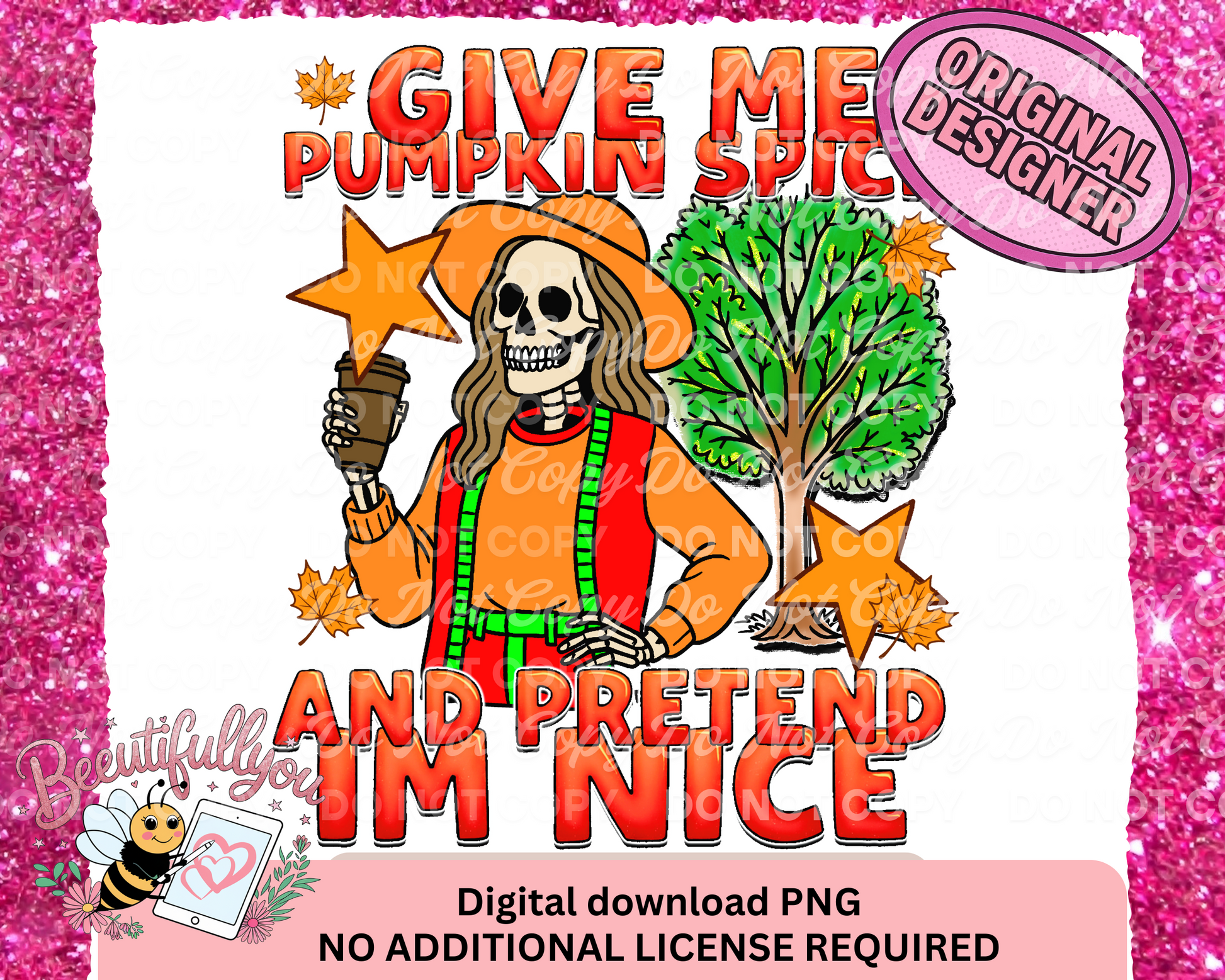 Give Me Pumpkin Spice PNG | Snarky Fall Skeleton Design | “And Pretend I’m Nice” | Digital Download