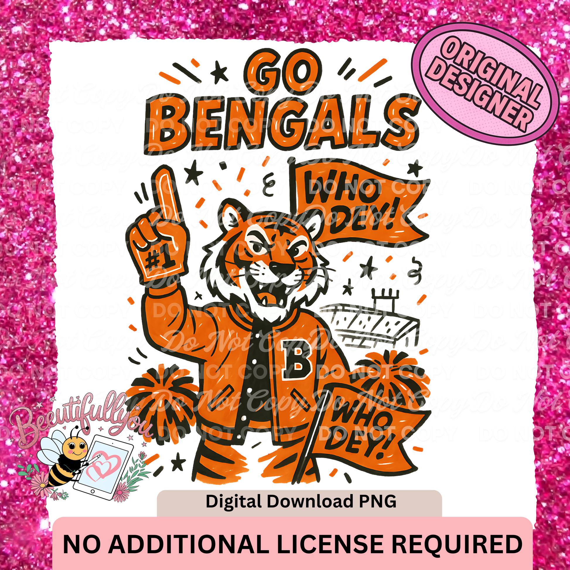 Go Bengals PNG β Who Dey Tiger Mascot Design