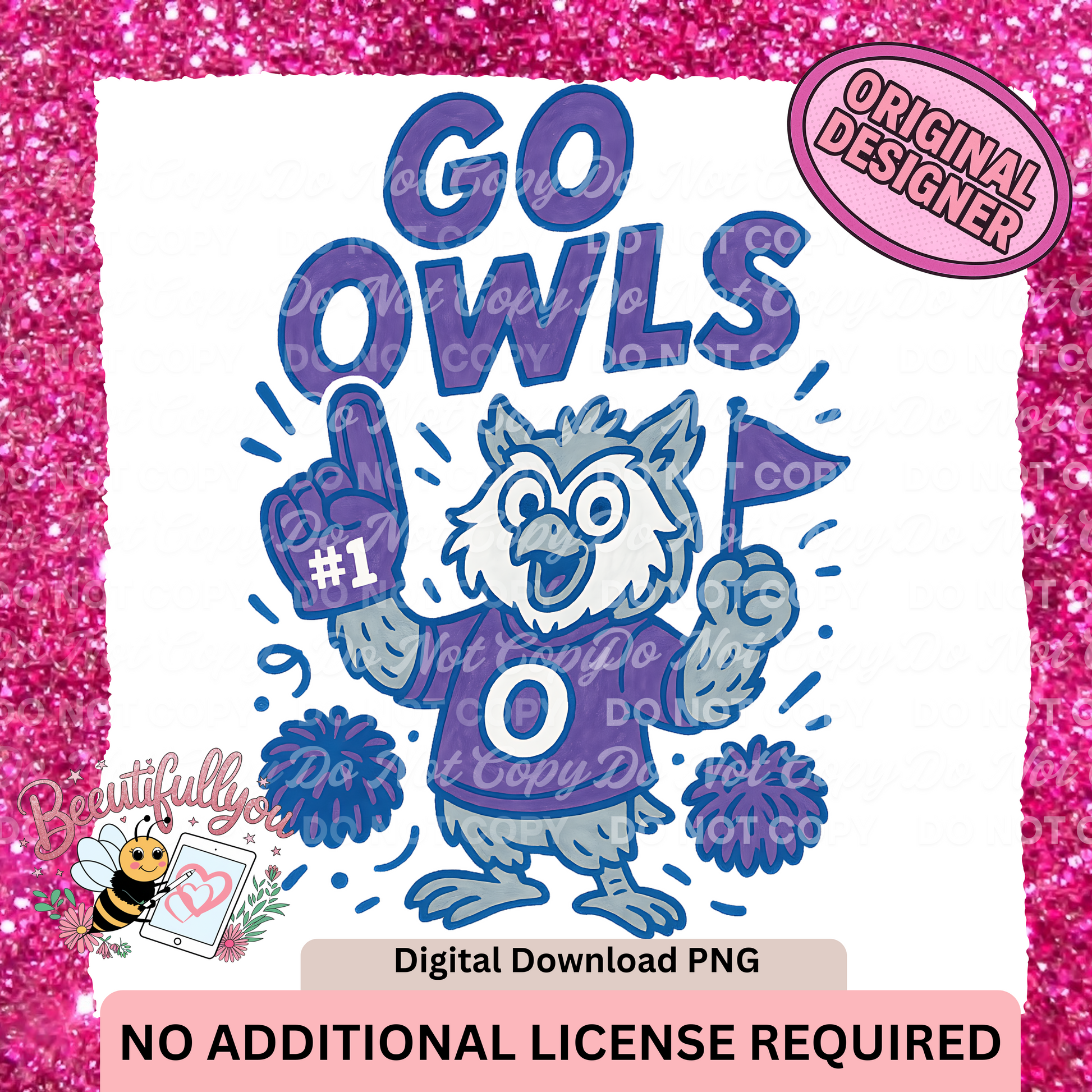Cheer on your team with this fun and feathery “Go Owls” PNG design! Featuring a wide-eyed owl mascot in a varsity tee, this hand-drawn clipart is perfect for creating team gear, school spirit banners, or fan merch.
