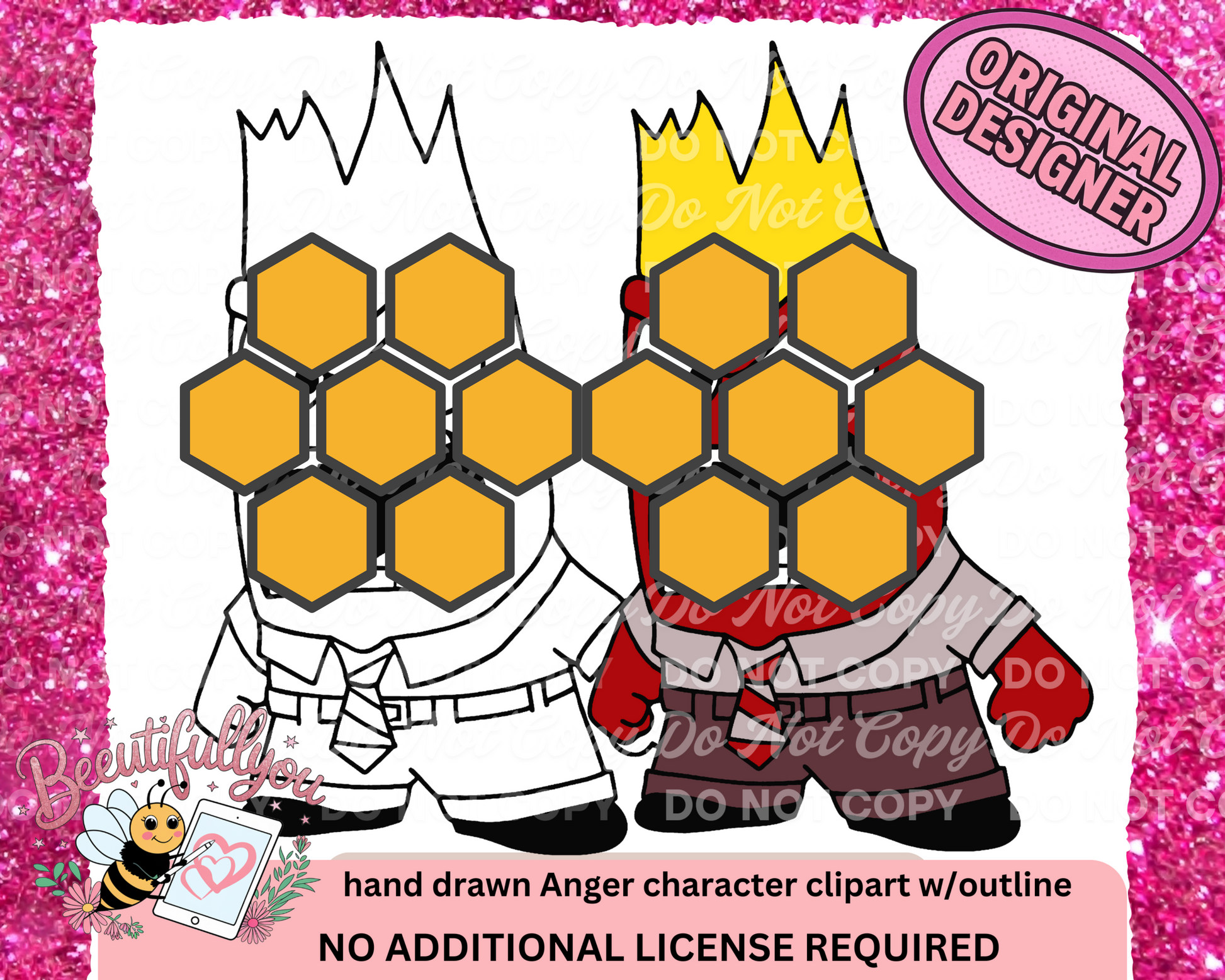 Add some fiery flair to your designs with this hand drawn Anger clipart! This listing includes both a colored version and a black outline version—ideal for use in your own custom creations.