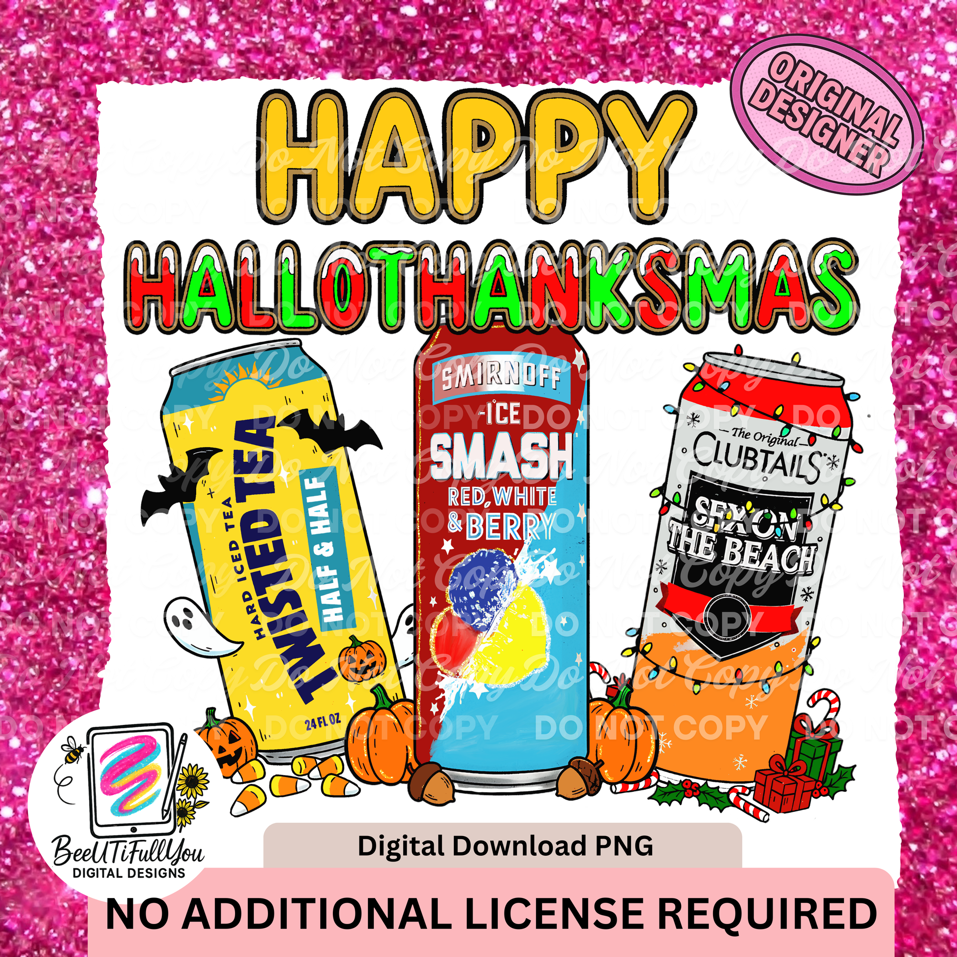 Happy Hallothanksmas PNG | Funny Holiday Drink Design | Twisted Tea, Smirnoff & Clubtails Christmas Thanksgiving Halloween