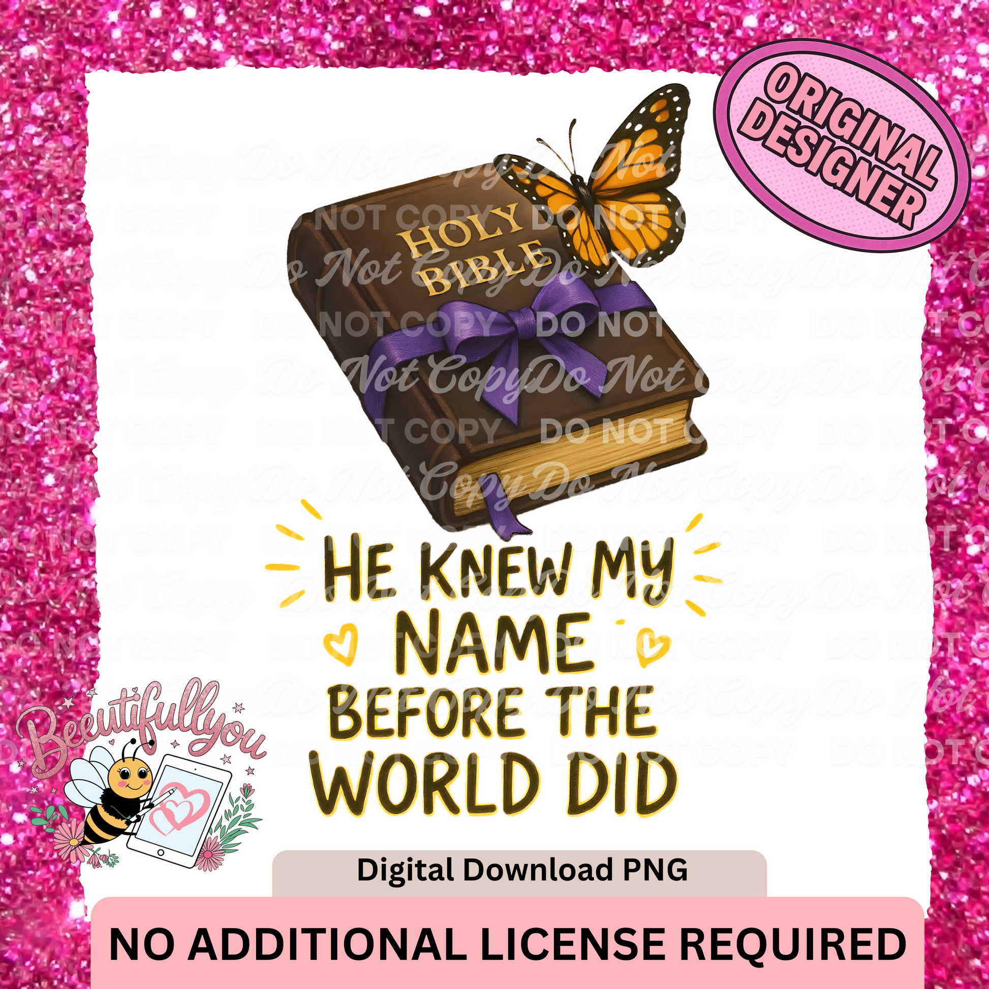 He Knew My Name – Bible & Butterfly Faith Design PNG