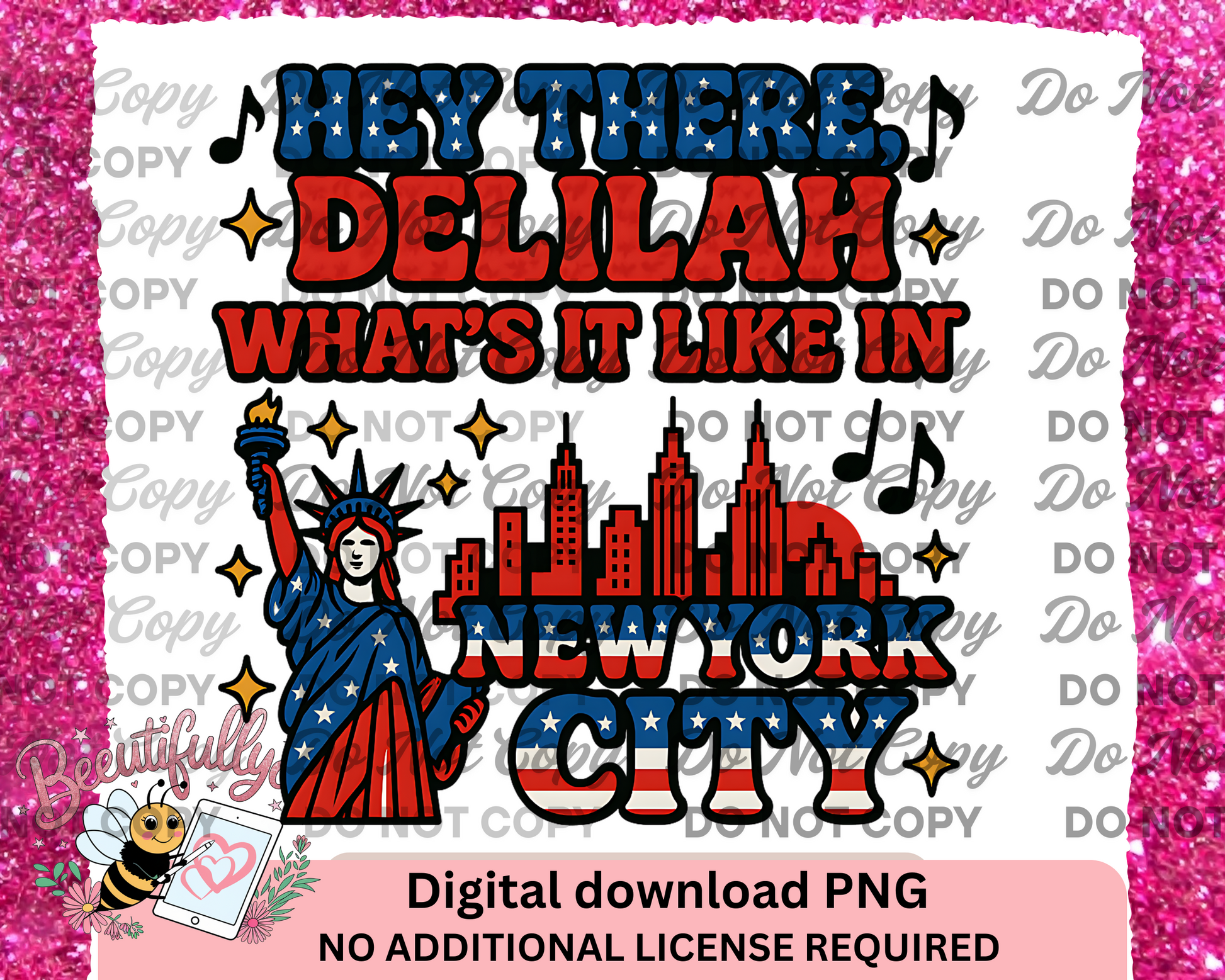 Hey There Delilah NYC PNG | Patriotic Funny Digital Design | Statue of Liberty Clipart | Music Quote Shirt Design