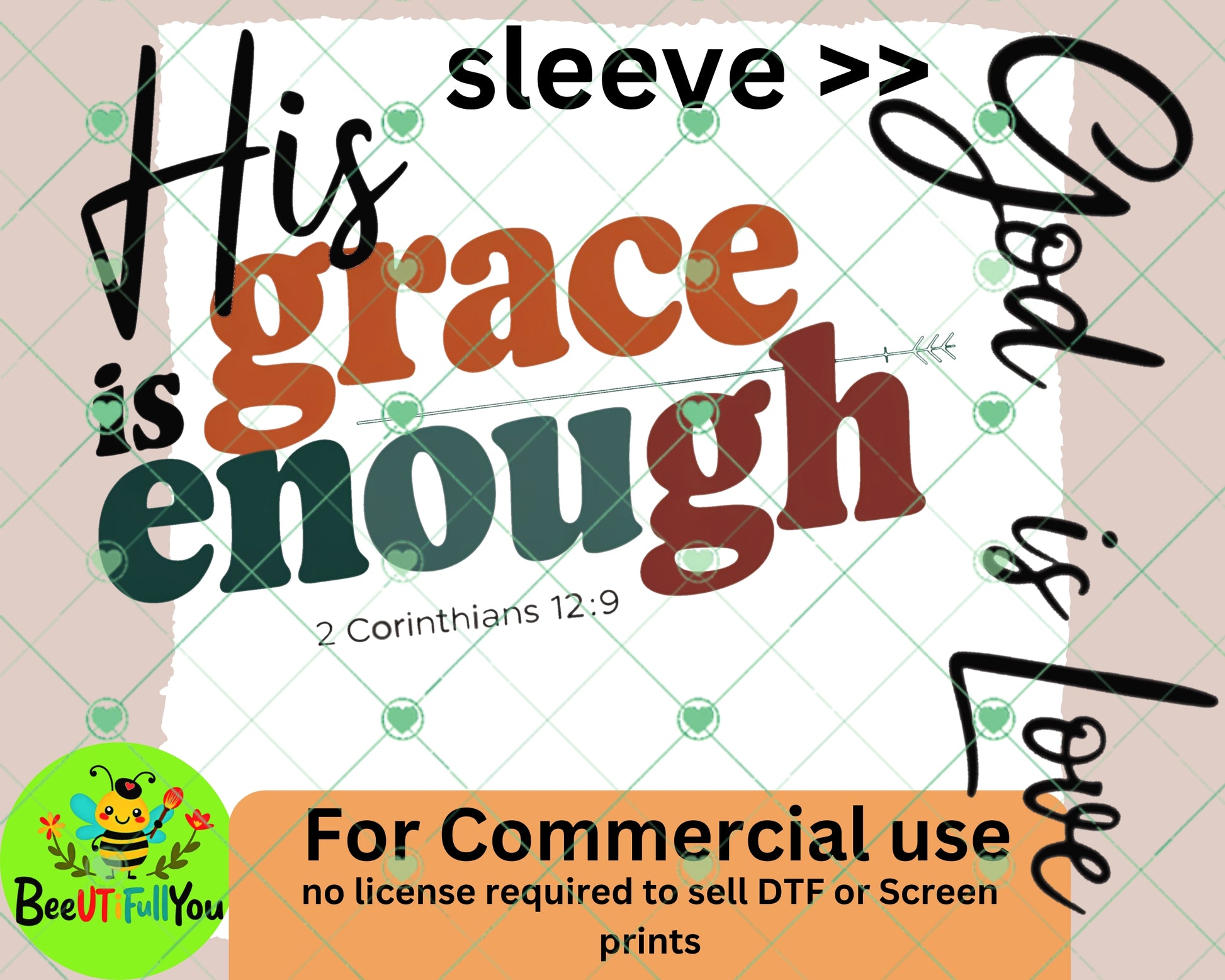 His Grace Is Enough" Bible Verse PNG Design with Sleeve Script