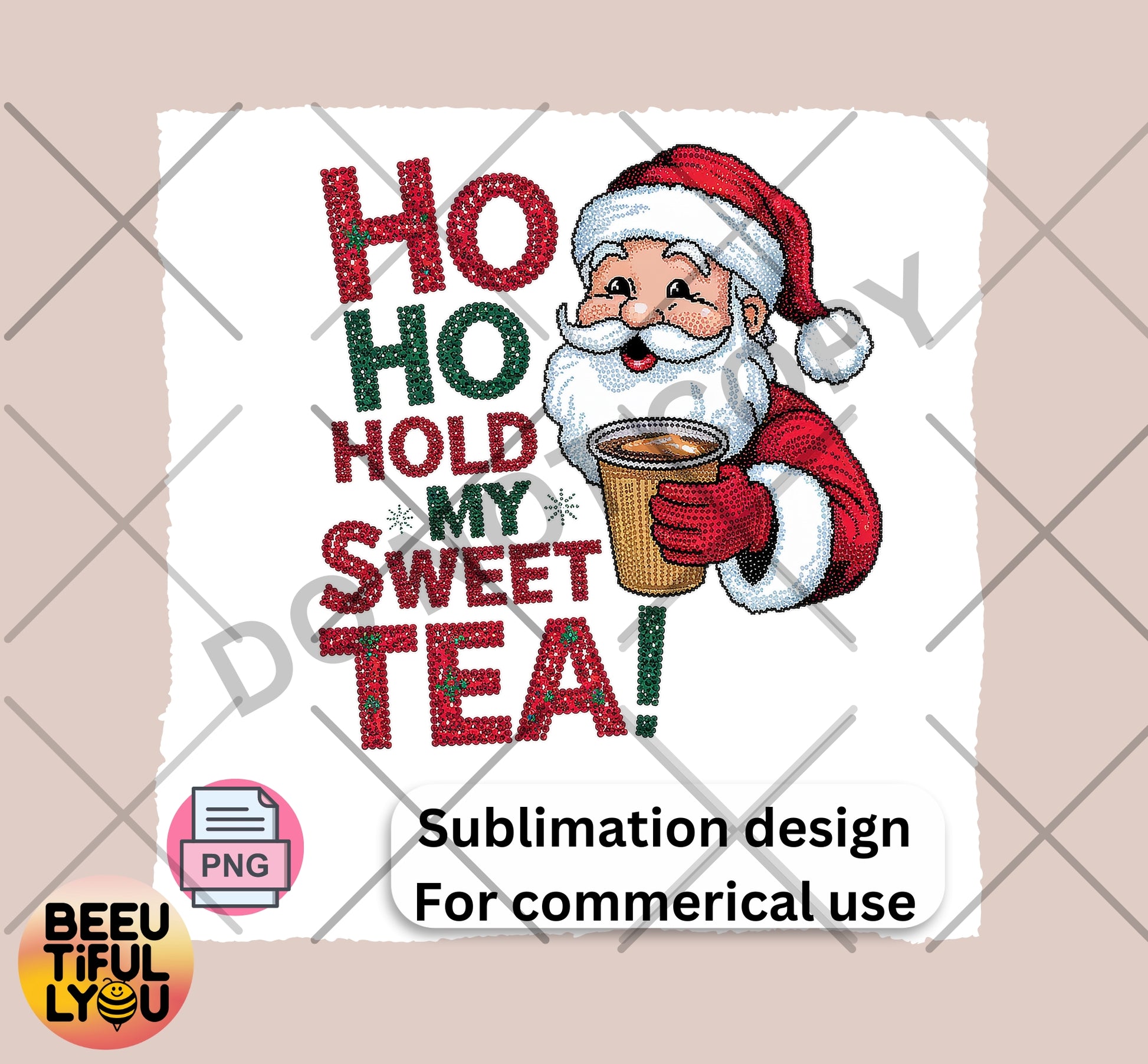 Ho Ho Hold My Sweet Tea Sublimation Design - Funny Southern Santa Christmas PNG for Commercial Use