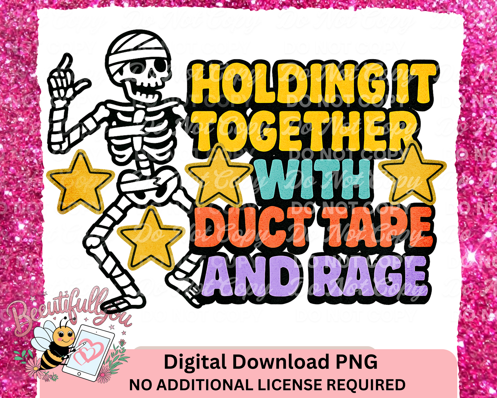 Holding It Together With Duct Tape and Rage PNG – Funny Skeleton Digital Download