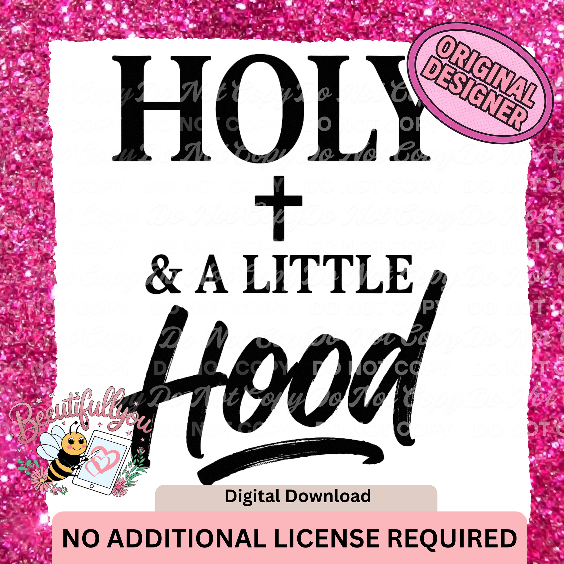Holy + A Little Hood | Funny Faith-Based PNG Design | No Additional License Required