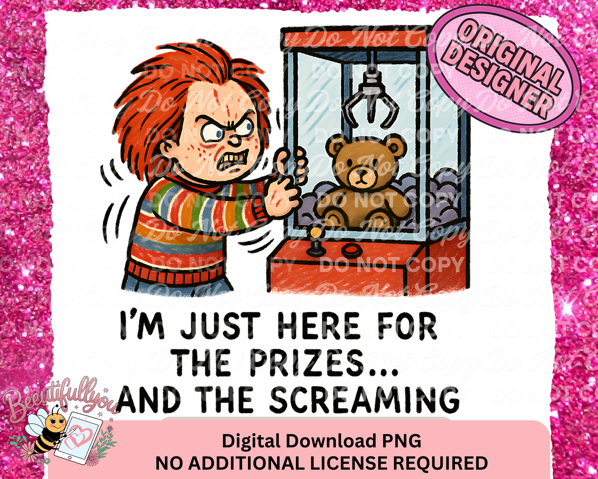 • Artwork: Angry Chucky character shaking a claw machine with a trapped teddy bear
