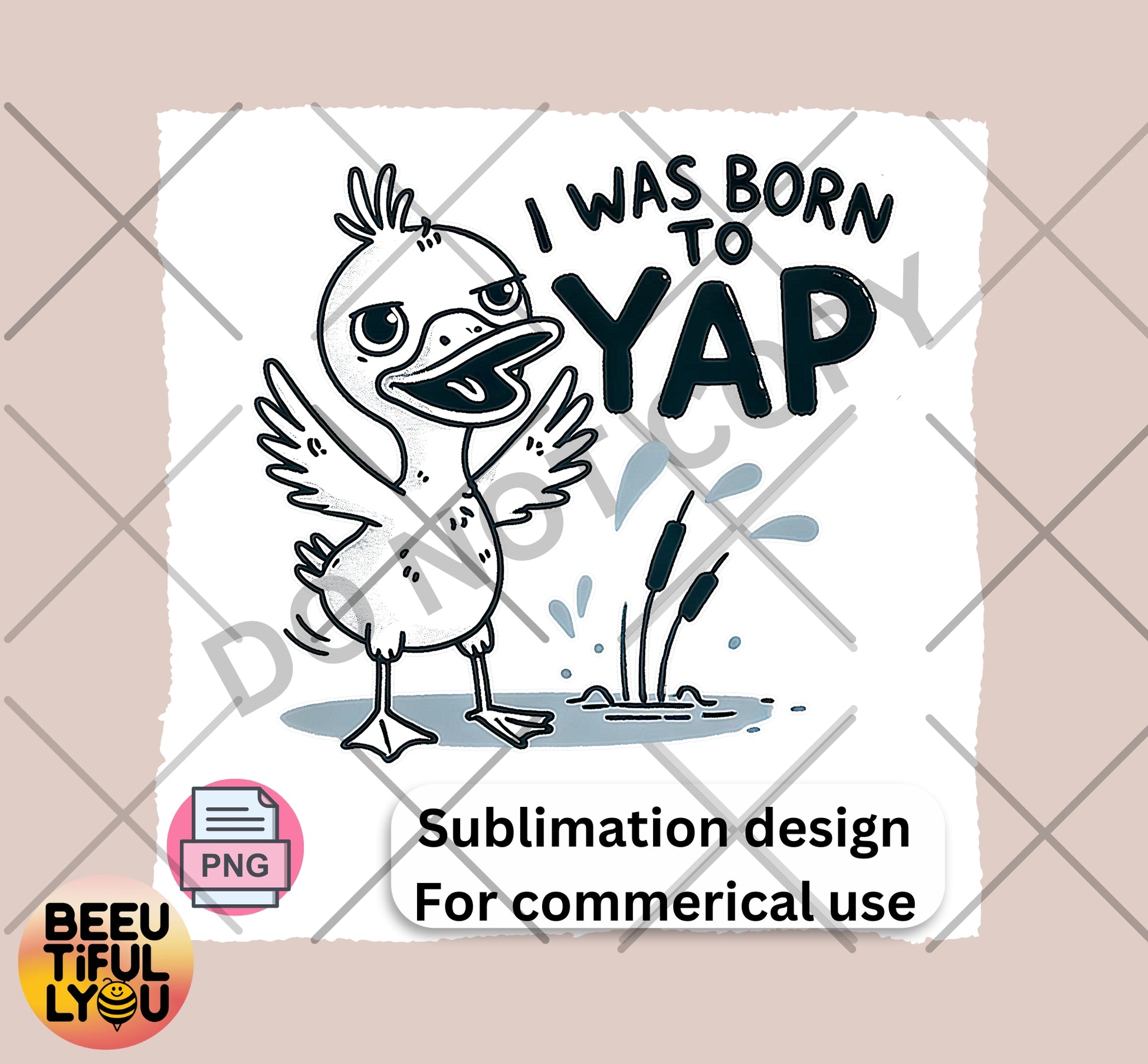 I Was Born to Yap Funny Duck Sublimation Design - Cute Animal Humor PNG for T-Shirts, Tumblers, and Crafts