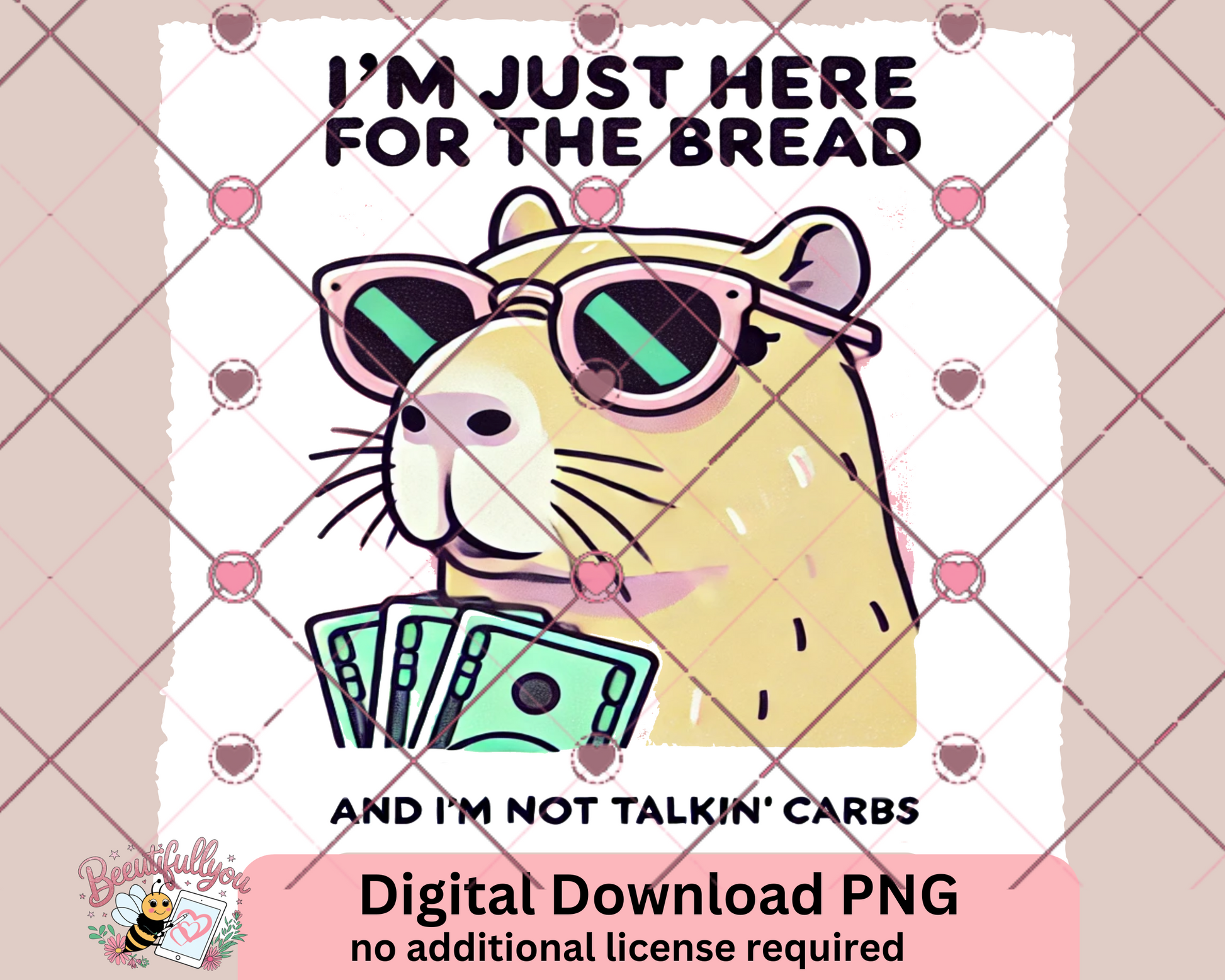I'm Just Here for the Bread | Funny Capybara Money Meme PNG | Digital Download
