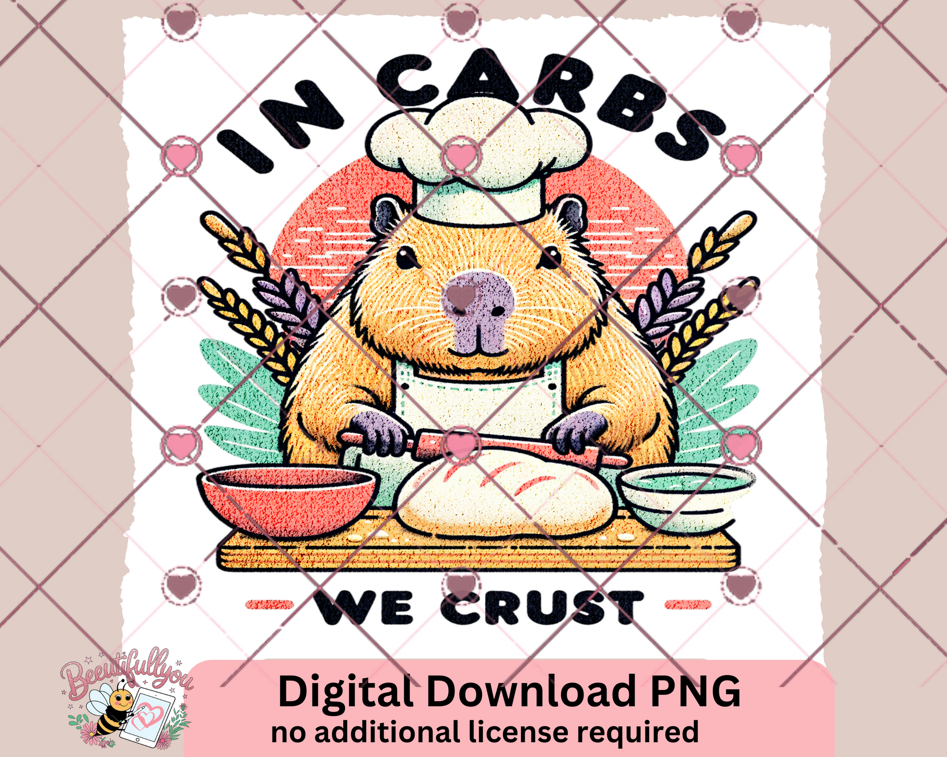 In Carbs We Crust | Funny Capybara Baking PNG | Digital Download for Bakers & Bread Lovers