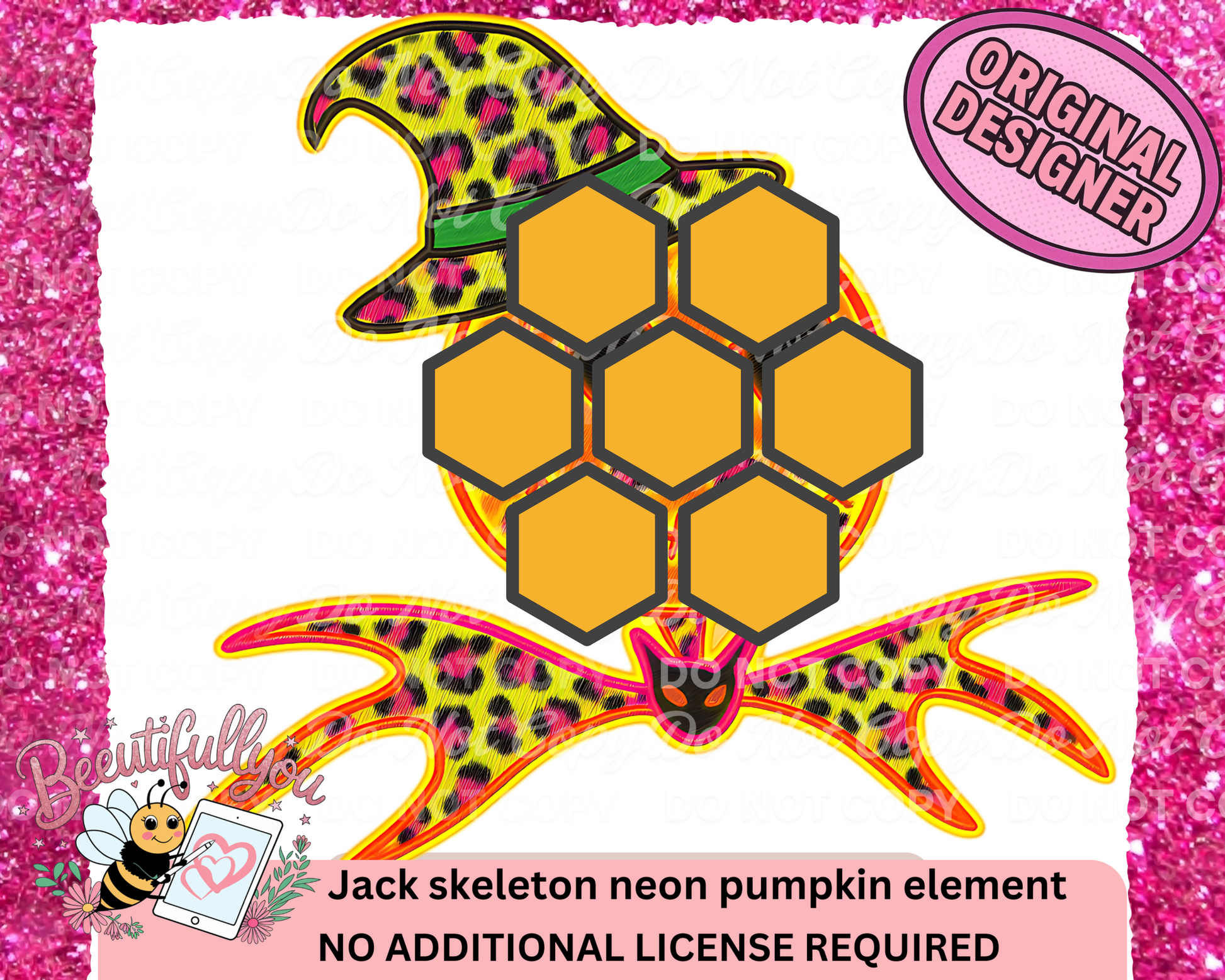 Add some bold neon attitude to your Halloween designs with this Jack Skellington-inspired pumpkin clipart! Featuring a glowing cheetah print hat and collar in vibrant neon orange, pink, and yellow tones, this element is perfect for edgy fall and spooky season creations.