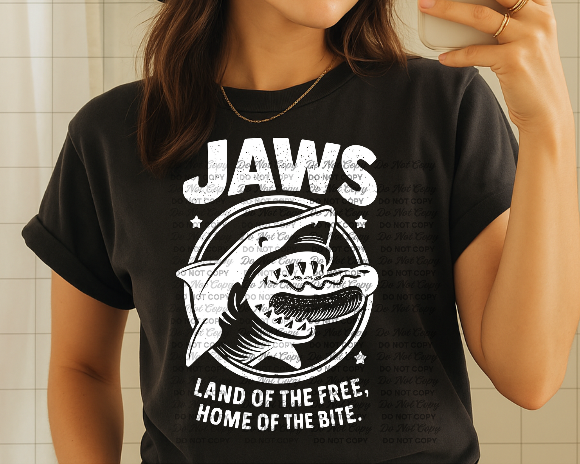 Sink your teeth into summer with this Jaws-inspired patriotic PNG! Featuring a hilarious shark biting into a hot dog, this retro design is perfect for 4th of July BBQ shirts, beach gear, or funny summer merch.