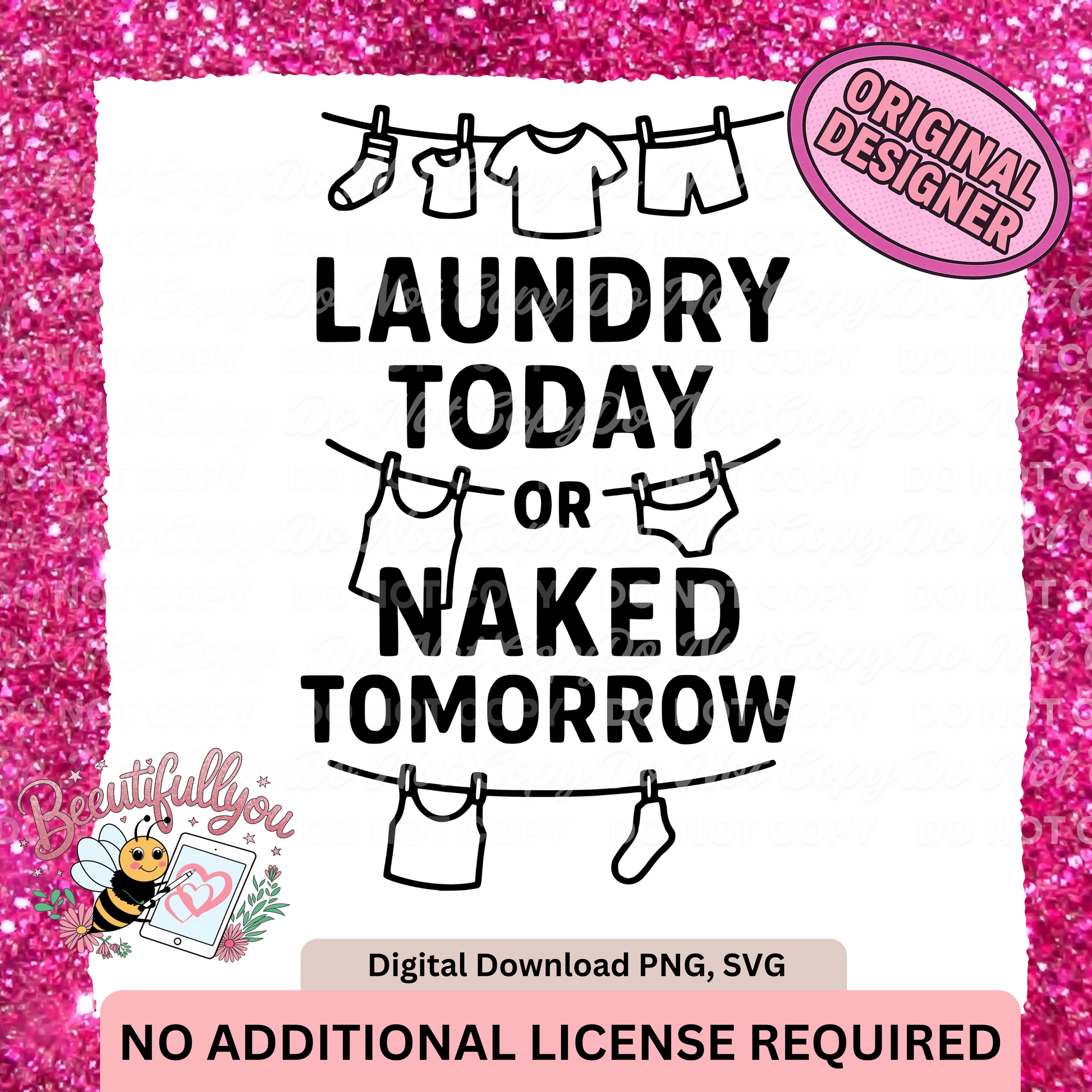 Laundry Today or Naked Tomorrow PNG SVG | Funny Laundry Room Quote Digital Download
