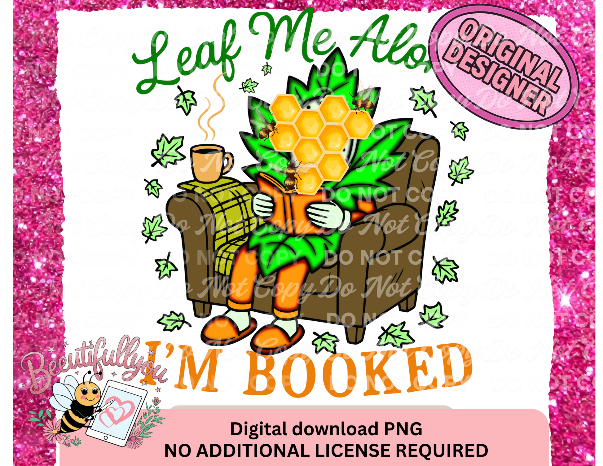 With the text: “Leaf Me Alone – I’m Booked,” it’s the perfect mashup of spooky season and introvert energy.
